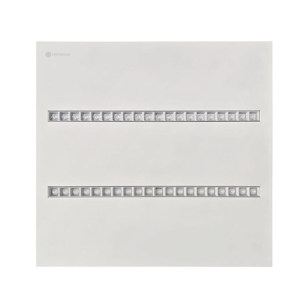 PANELs encastrés carrés avec Multi Select, driver IoT DALI-2, design EVERLOOP et faible éblouissement, 600 x 600 mm. Caractéristiques du produit: Boîtier en acier à faible teneur en carbone, disponible en blanc et noir. Inclut EVERLOOP : remplacement simple et rapide d'une source lumineuse et du pilote LED. Luminaire IoT-ready avec technologie DALI-2. Bornier à 5 pôles, section de câble jusqu'à 5 x 2,5 mm². Durée de vie (L80/B10) : 70 000 h (à 25 °C). Avantages du produit: Mise à niveau facile de la source lumineuse et du driver (conception EVERLOOP). Répartition homogène de la lumière et éblouissement réduit (UGR ≤ 19) grâce à l'optique IndiviLED®. Haute performance avec IRC 90 et jusqu'à 140 lm/W. Grande polyvalence grâce aux niveaux de flux lumineux sélectionnables (Multi Select). Haute homogénéité de la teinte SDCM 3. Convertisseur externe pour plus de flexibilité et une installation facilitée. Câblage traversant possible avec le boîtier de connexion inclus. Multiples options de montage grâce à différents accessoires. Convient aux installations de secours à batterie centrale selon. selon EN 60598-2-22. Zones d'application: Remplacement direct des luminaires encastrés avec tubes fluorescents. Bureaux, établissements d'enseignement, bâtiments publics. Salles de conférence. Convient aux systèmes encastrés avec une grille de dimensions 600 x 600 mm. Technique / Accessoires: Accessoires pour plusieurs options de montage disponibles. Boîtier de connexion avec borne à 5 pôles incluse. Câble de sécurité pour luminaire fourni. Ballast externe inclus. Conseils de sécurité: Tous les branchements électriques doivent être effectués par une personne qualifiée.. Attention, risque de choc électrique.. Les luminaires ne conviennent pas pour être recouverts de matériaux à isolation thermique.. Le câble ou cordon flexible externe de ce luminaire ne peut pas être remplacé ; si le cordon est endommagé, le luminaire doit être détruit..