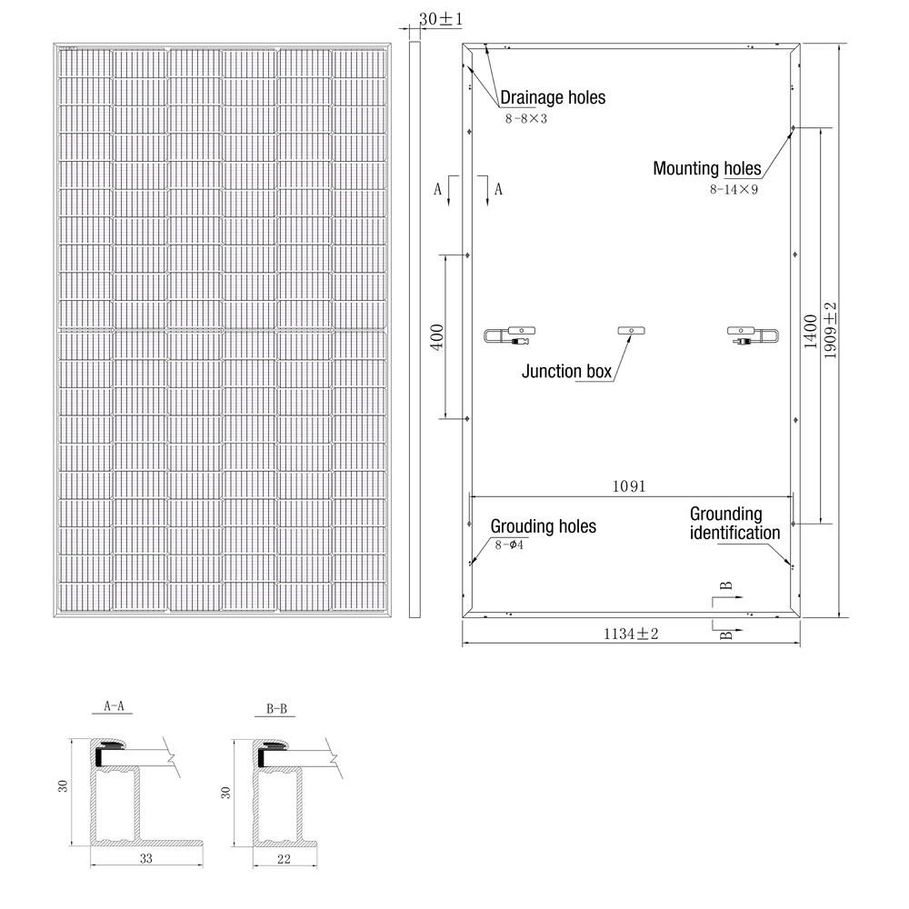 Panneaux photovoltaïques monofaciaux TopCon avec cadre noir. Caractéristiques du produit: Connecteurs d'origine Stäubli MC4 EVO 2. Disponible en version câble long. Cadre en alliage d'aluminium anodisé. Technologie multibus bar (MBB). Charge statique maximale jusqu'à 5400 Pa. Avantages du produit: La technologie TopCon offre une efficacité supérieure grâce à une meilleure conversion de la lumière solaire que les panneaux standards. 15 ans de garantie produit et 30 ans de garantie de puissance de sortie linéaire. Effet PID (dégradation induite potentielle) limité grâce à un contrôle qualité strict dans le processus de production. Très faible dégradation annuelle des cellules grâce à une meilleure résistance aux températures élevées. Une conception durable et des normes de production plus élevées garantissant la fiabilité et la qualité opérationnelles. Zones d'application: Installations commerciales et industrielles. Installations résidentielles. Technique / Accessoires: Le produit est livré dans son ensemble, aucun assemblage n'est requis de la part du client. Les connecteurs MC4 EVO 2 sont montés sur le panneau. 3 diodes bypass, déjà installées dans le panneau.