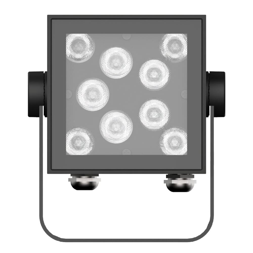 Luminaire de classe I en fonte d'aluminium noir (RAL9005) avec verre trempé haute transparence. Orientable. Convient pour la mis en valeur de bâtiments/façades. Température de fonctionnement : -40…+40°C. Dim: 82x112x132mm. Garantie 5 ans.