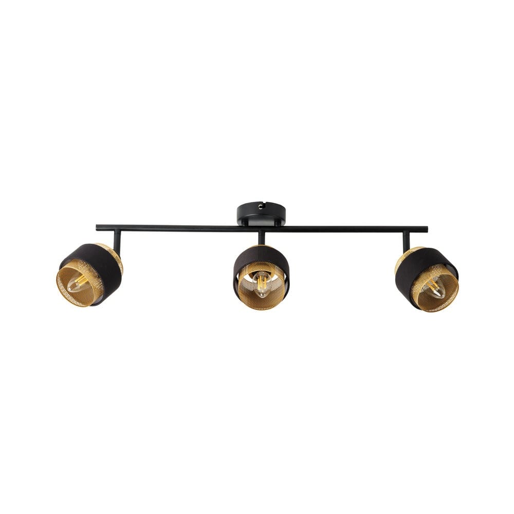 Plafonniers en métal doré et textile avec douille E14. Caractéristiques du produit: Matériau du boîtier : métal et tissu. La famille de luminaires comprend cinq versions avec jusqu'à 4 têtes de spot. Têtes ajustables. Avantages du produit: Interrupteur marche/arrêt sur le modèle à 1 spot pour une utilisation pratique. Solution durable grâce aux sources lumineuses remplaçables. Montage simple. Lampes LED OSRAM à intensité variable incluses. Zones d'application: Applications intérieures. Couloirs, halls d'entrée, cages d'escalier, pièces à vivre, sous-sols. Chambres. Conseils de sécurité: Tous les branchements électriques doivent être effectués par une personne qualifiée.. Attention, risque de choc électrique.. Produit de classe de protection I. Toutes les pièces métalliques conductrices d'électricité du boîtier qui peuvent absorber une tension pendant le fonctionnement ou pendant la maintenance en cas de défaut doivent être reliées en permanence au conducteur de protection.. Vérifiez l'adéquation du mur et du plafond. En cas de doute, demandez conseil à un professionnel..