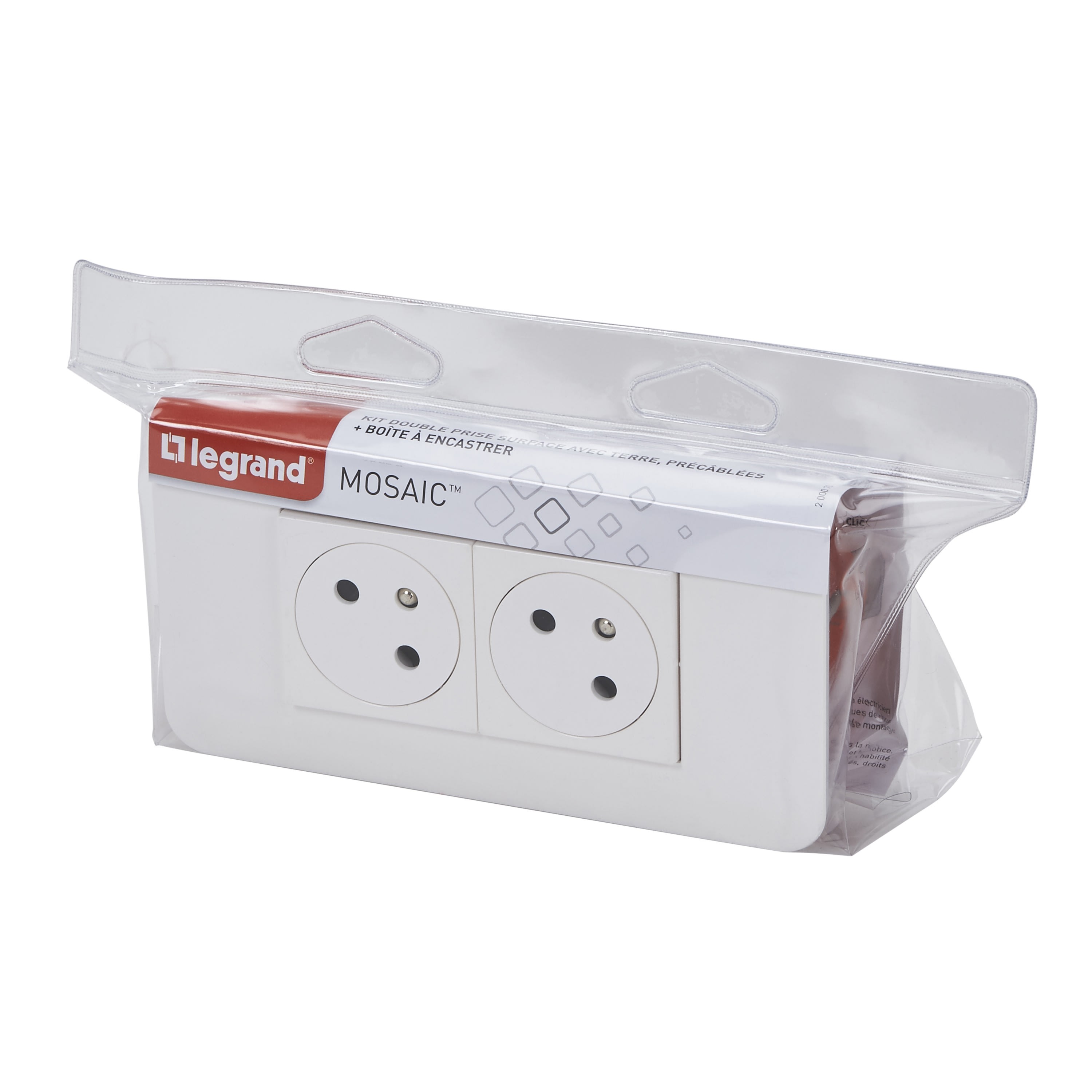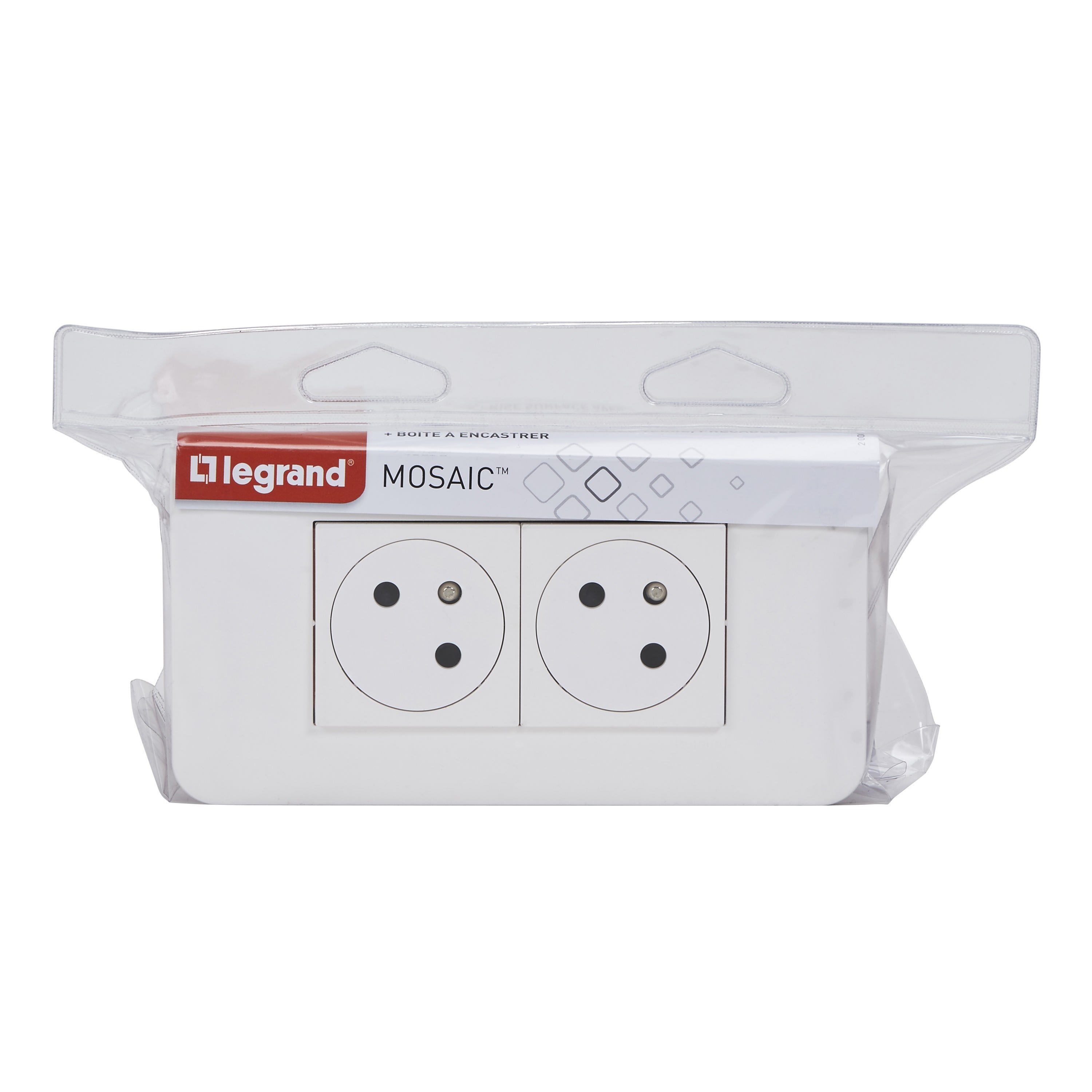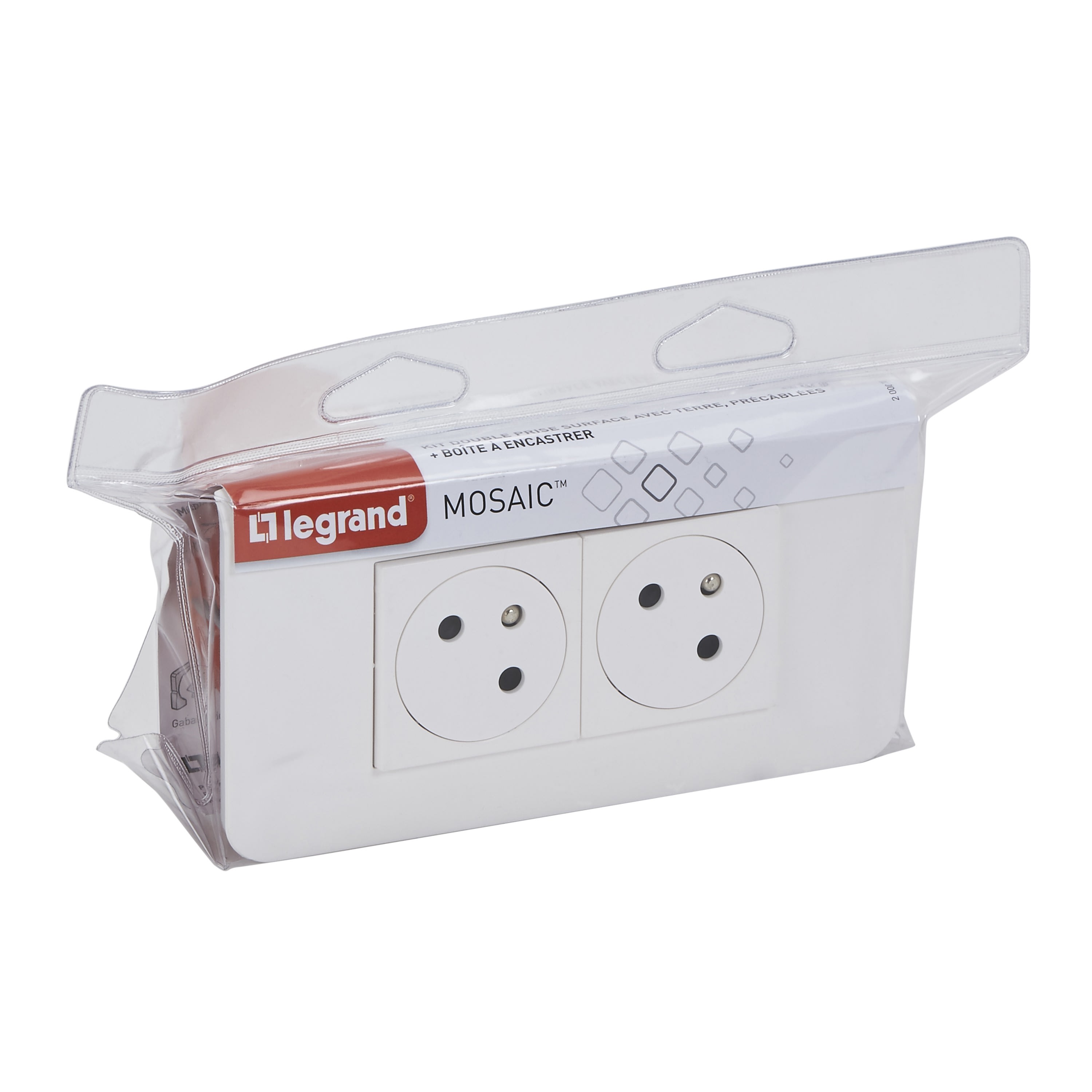 Legrand - 2x2P+T Surface Mosaic Link à 45° précâblée + plaque + boite à encastrer - blanc - 200070