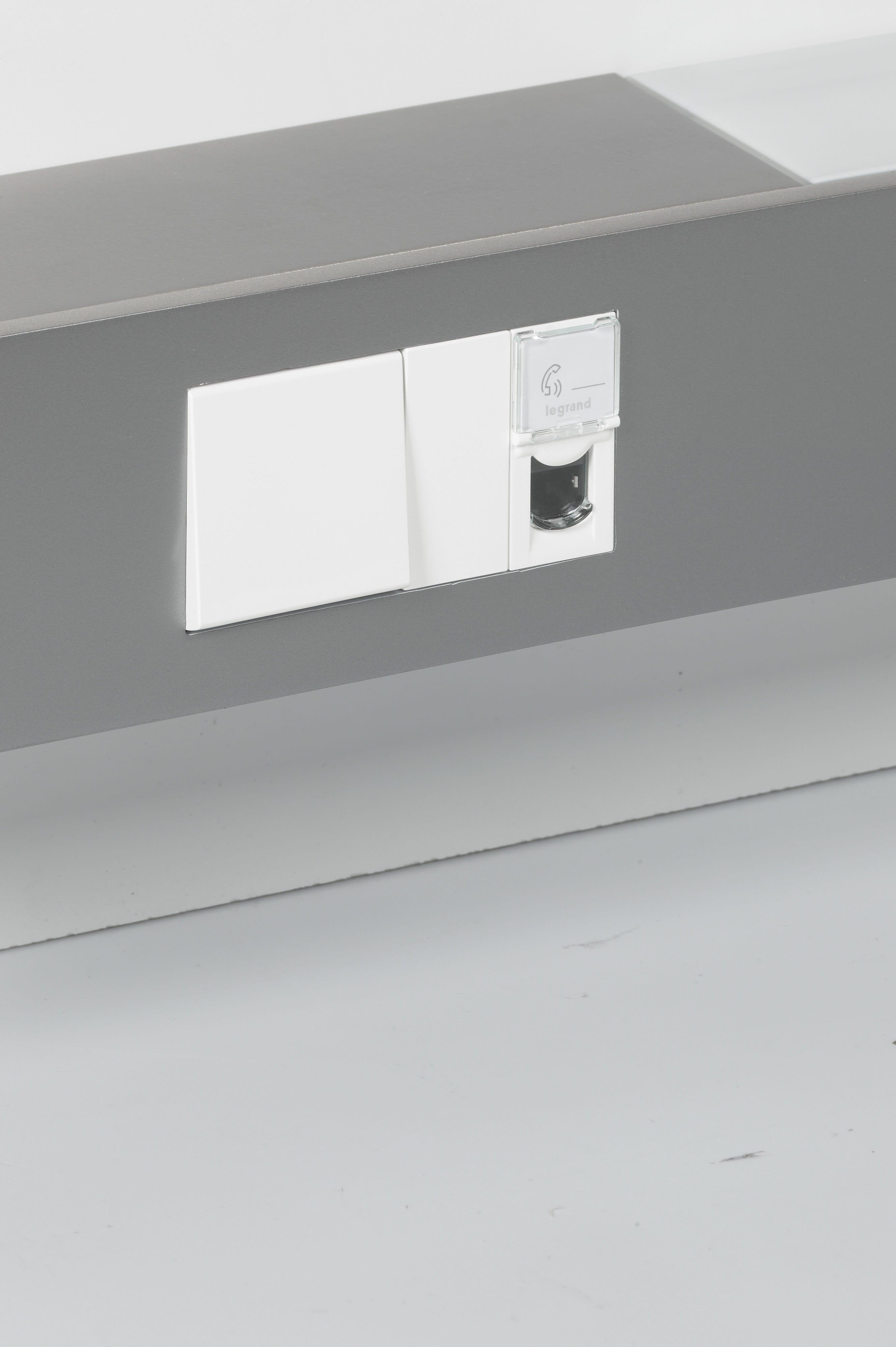 Applique tête de lit équipée avec éclairage de lecture et d'ambiance dynamique à LEDs ECO2 - Longueur 1,4m Eclairage de lecture 1146 lumens et d'ambiance 2315 lumens - Equipée de mécanismes Mosaic antimicrobien (contient des ions d'argent qui limitent le développement des bactéries en surface) :- 1 obturateur 2 modules- 1 poussoir à tirette pour la lecture- 1 poussoir pour l'éclairage d'ambiance- 2 prises 2P+T IP20 - IK04 - Classe I Matière aluminium et ABS, couleur gris, antimicrobien, contient des ions d'argent qui limitent le développement des bactéries en surface (sauf verrine) Tenue au fil incandescent : 850°C - Ra ou IRC supérieur à 80 - Conforme aux normes EN 60598-1, NF EN 60598-2-25, NF EN 12464-1