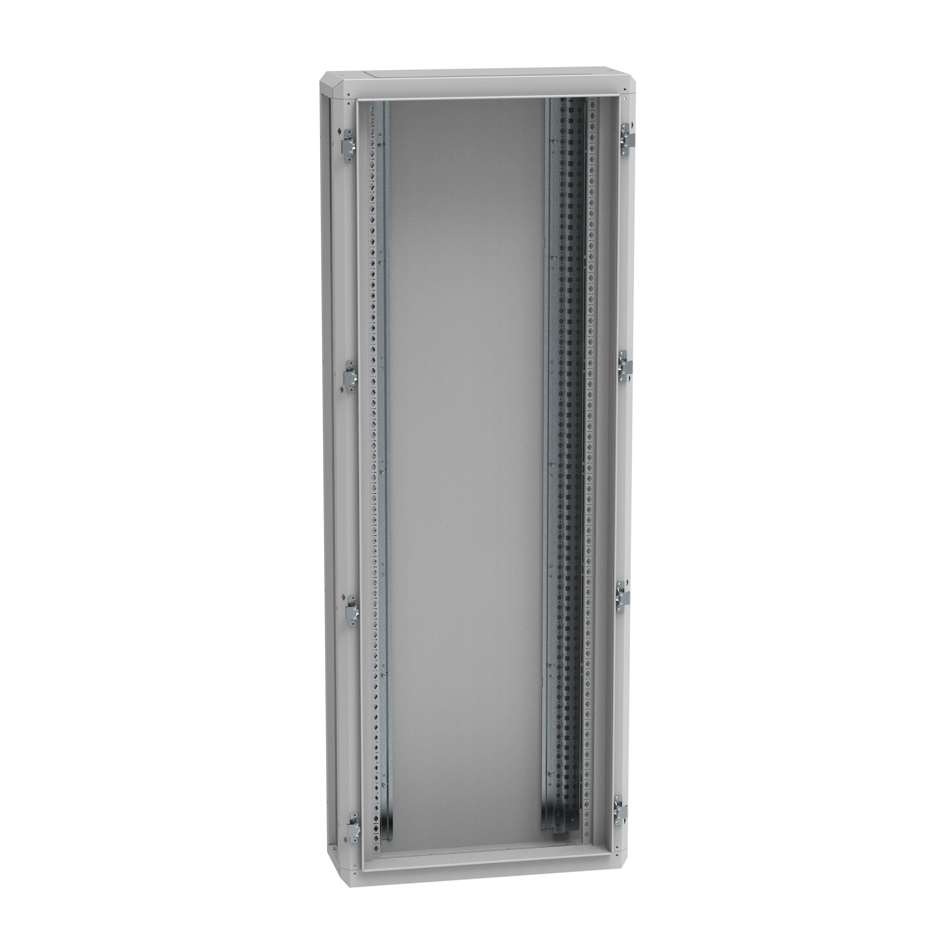 Dimensions extérieures : hauteur 1896mm - largeur 706mm - profondeur 252mm IP55 - IK08 avec porte Structure soudée et montants fonctionnels vissés à l'arrière de l'armoire pour une plus grande rigidité Panneaux à commander séparément Revêtement époxy polyester RAL7035