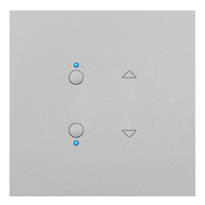 Commande de volets roulants MyHOME_Up Art d'Arnould avec 2 poussoirs et 2 LEDs de statut Univers Epure Acier satin Boutons chromés Dimensions grand carrée 80x80mm