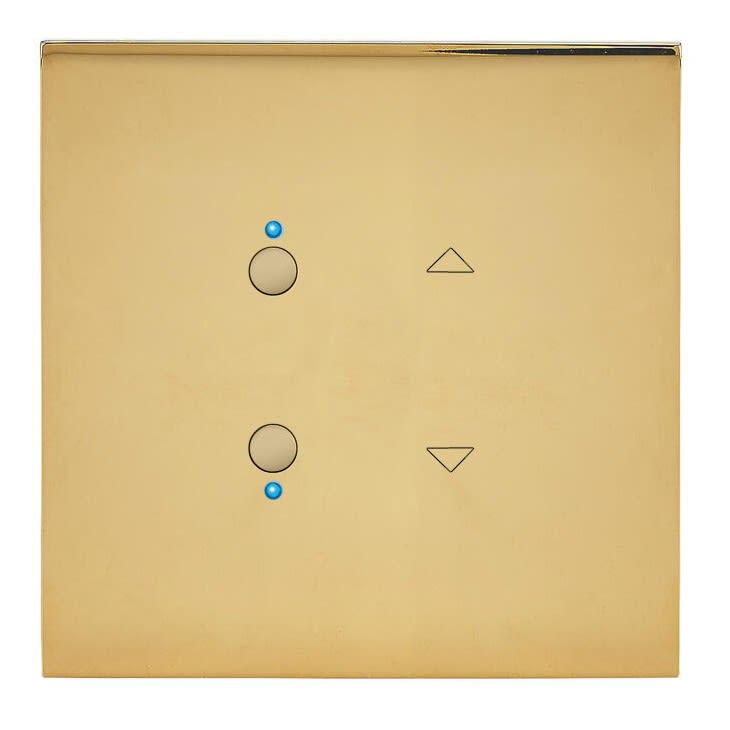 Commande de volets roulants MyHOME_Up Art d'Arnould avec 2 poussoirs et 2 LEDs de statut Univers Epure Or miroir Boutons dorés Dimensions grand carrée 80x80mm