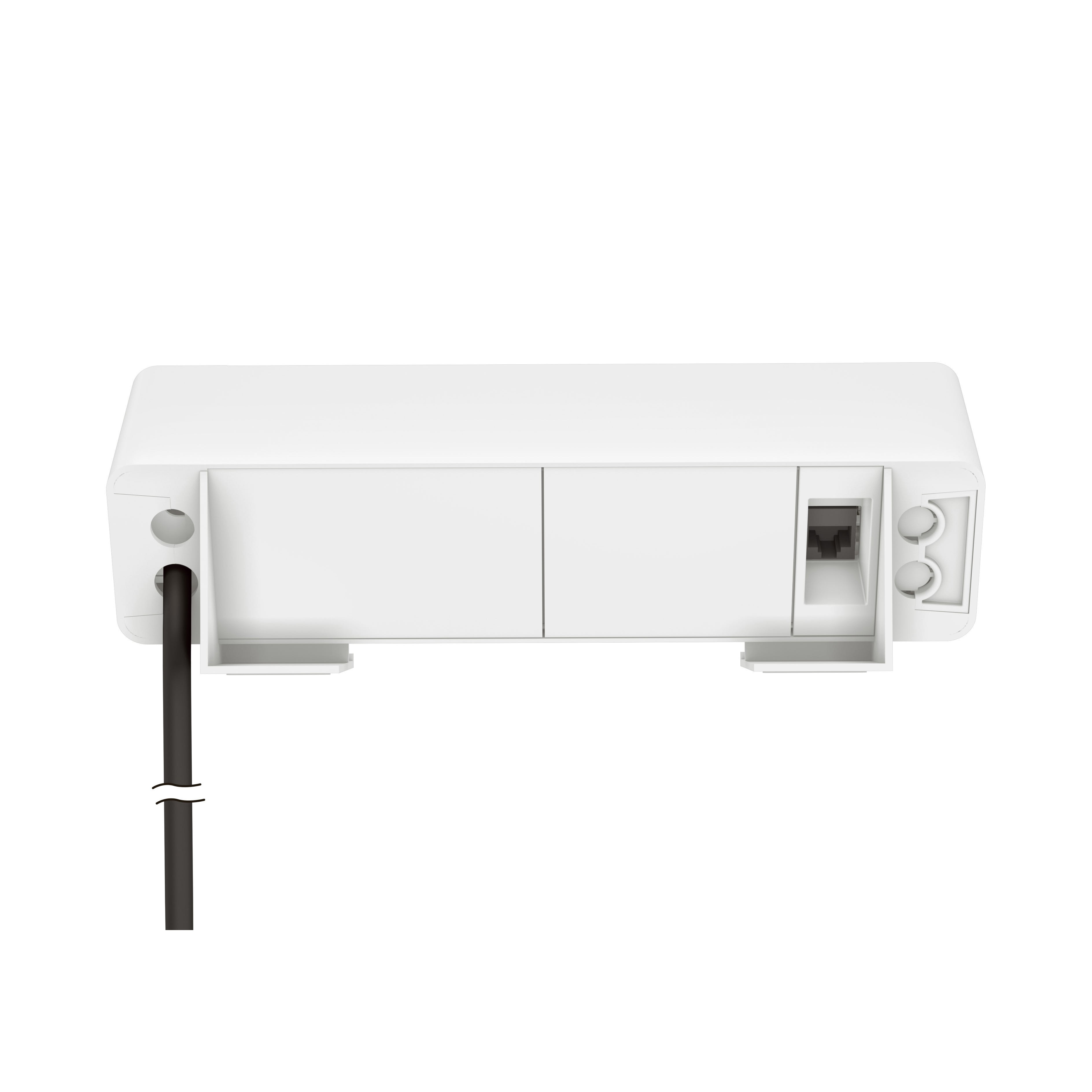 Coupleur (femelle/femelle) RJ45 CAT6 FTP Pré-cablé et livré avec un cordon de 2m et une fiche 2P+T Cuve aluminium blanc avec fond et embouts en ABS blanc Prises Mosaic 2P+T Surface finition blanche Se fixe au bureau avec la bride de fixation référence 655199 ou les adhésifs double face fournis