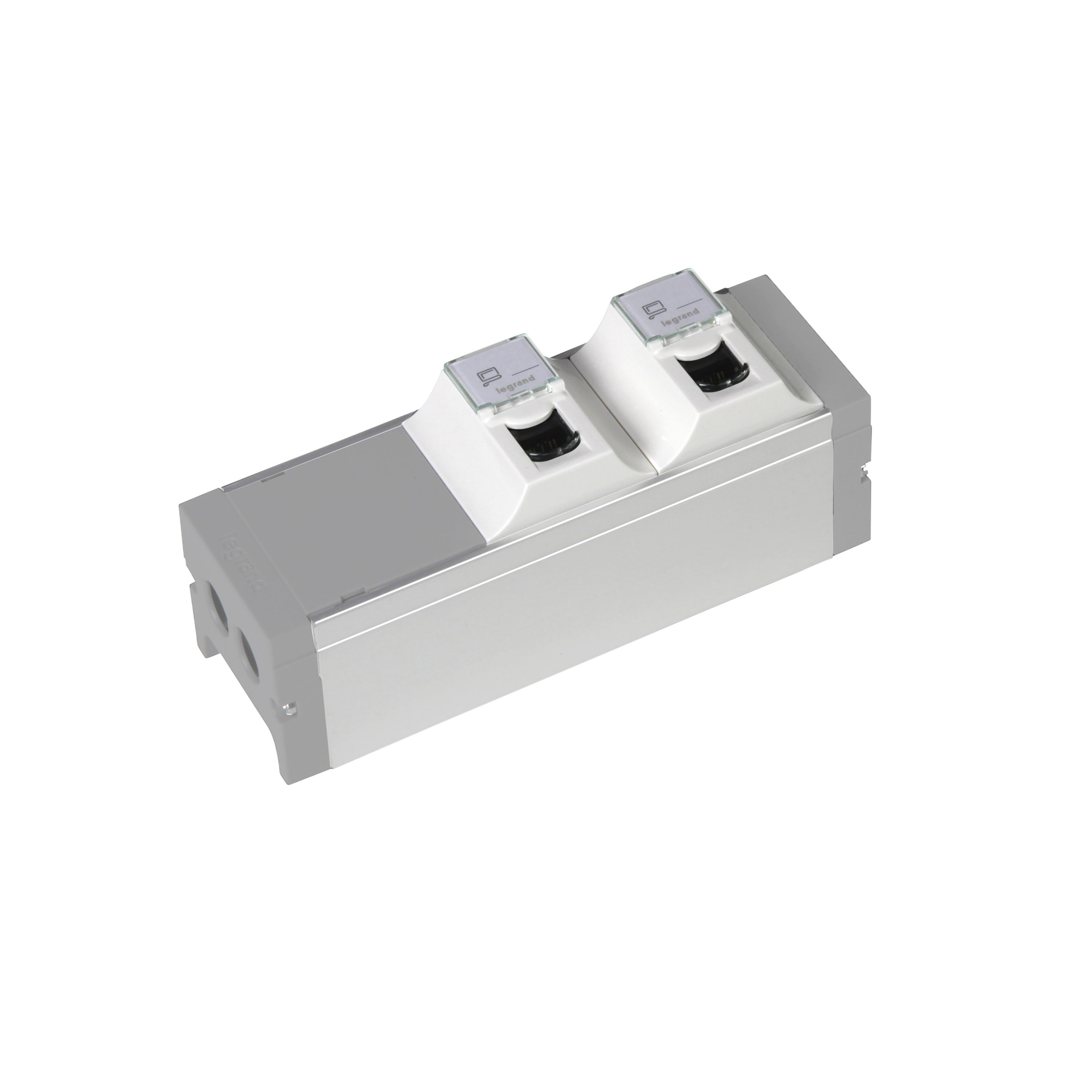Bloc nourrice à câbler équipé de 2 prises RJ45 catégorie 6 FTP traversée cuivre avec cuve en aluminium IP20 IK07 - conforme à la norme NF C 61-314