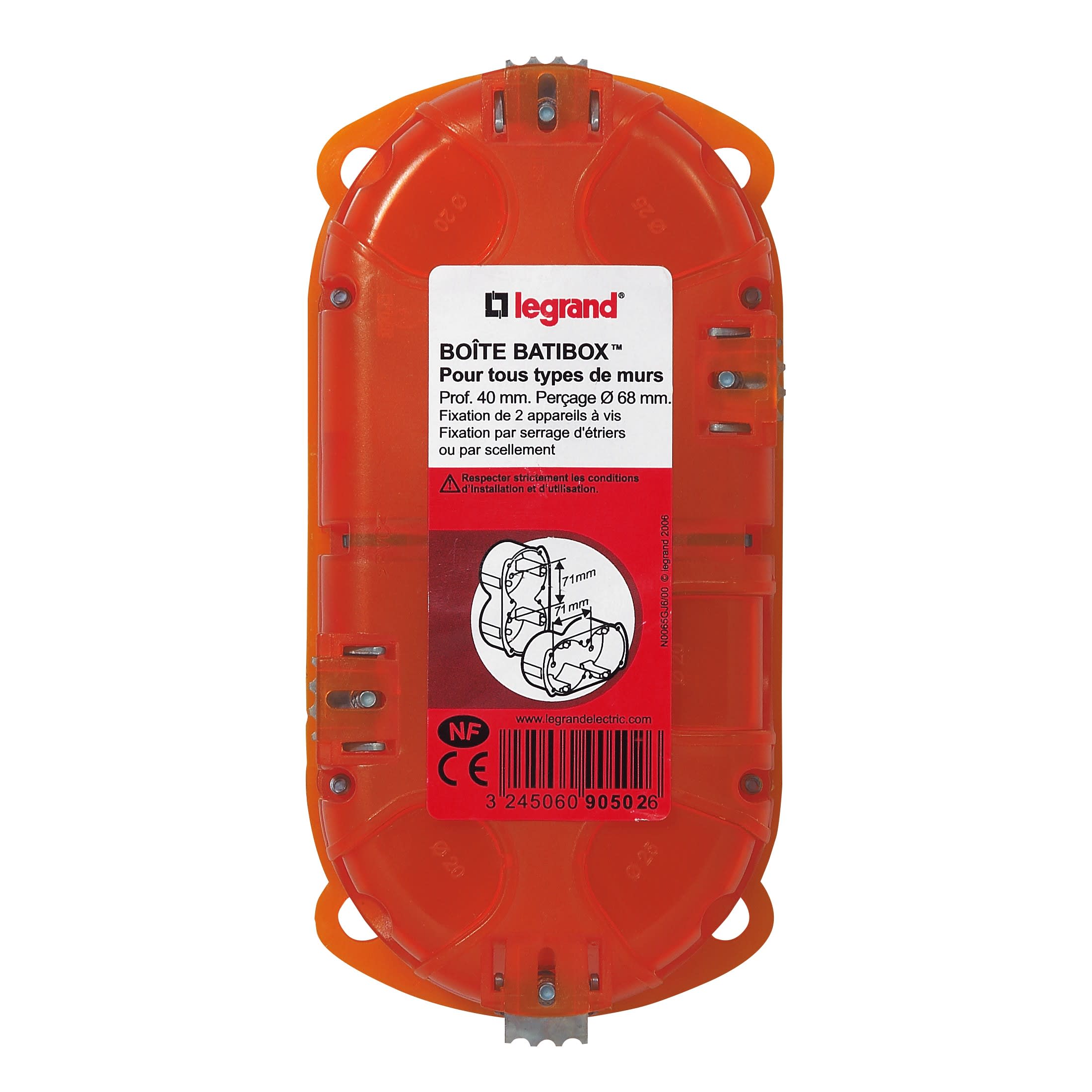 Legrand - Boîte à encastrer Batibox multimatériaux - 2 postes profondeur 40mm - 090502