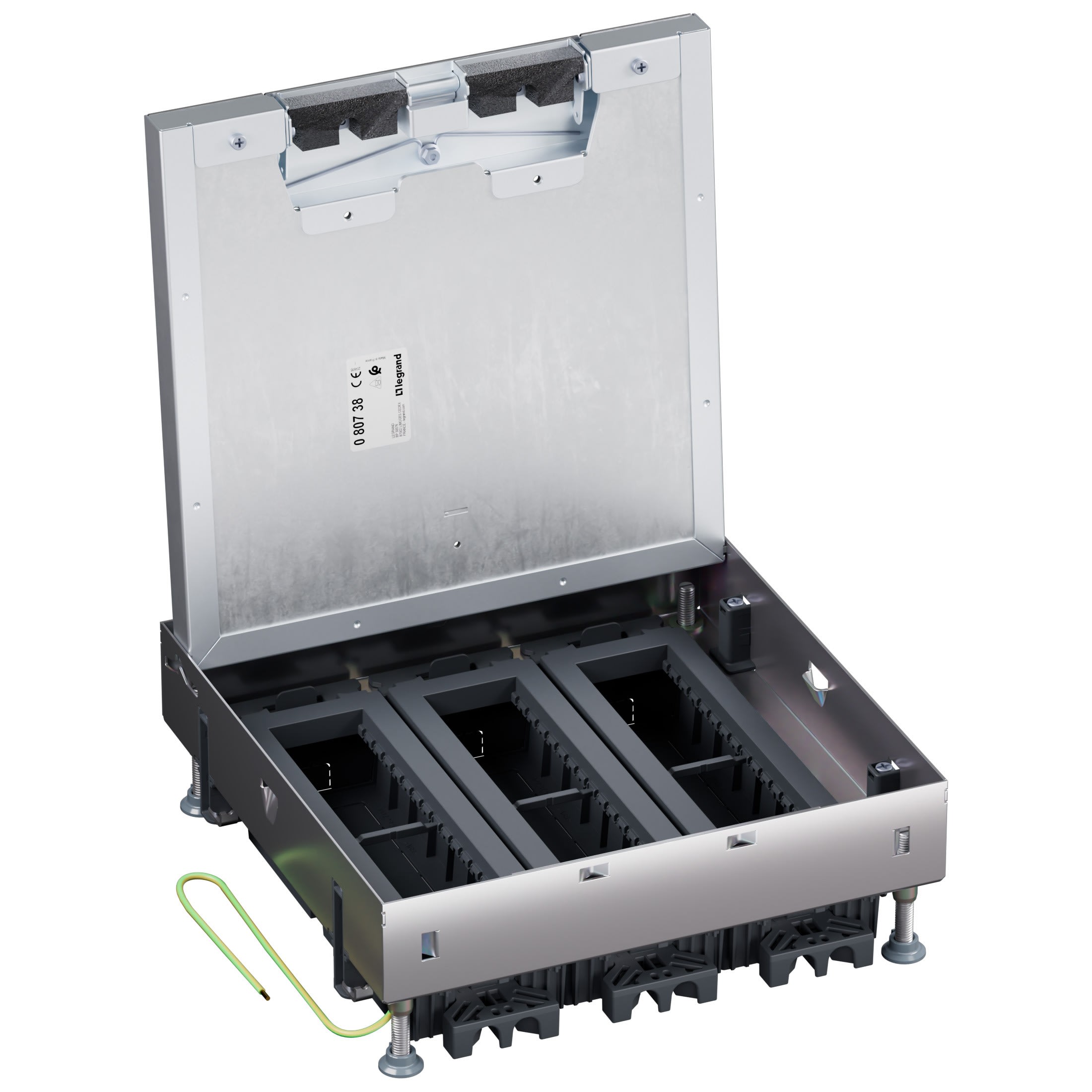 Compatible avec les gammes d'appareillage Mosaic et Arteor, avec installation rapide sur 3 niveaux et verrouillage sans outilDisponible en trois tailles, évolutive grâce à des supports d'appareillages communs permettant de transformer une boîte standard en affleurante sans décâblerCouvercle amovible facilitant les connexions, avec une résistance à la charge verticale de 5000N sur une surface de diamètre 130mmÉquipée de quatre pieds réglables en hauteur de 92mm à 122mm, extensibles jusqu'à 300mm avec l'accessoire réf 088142Couvercle compatible avec tout type de revêtement jusqu'à 8 mm d'épaisseur, offrant une finition esthétique et fonctionnelle