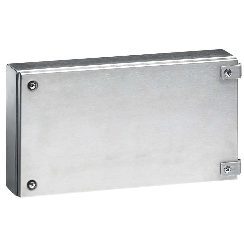 Boîtier industriel Atlantic inox rectangulaire IP66 IK10 Dimensions extérieures : - hauteur 200mm- largeur 400mm- profondeur 120mm Inox 304L - Vis imperdables Equipés de goujons pour fixation des rails et des plaques pleines - Vis inox IP66 suivant les normes EN 60529 et IEC 60529 - IK10 suivant les normes EN 62262 et IEC 62262 (EN 50102)