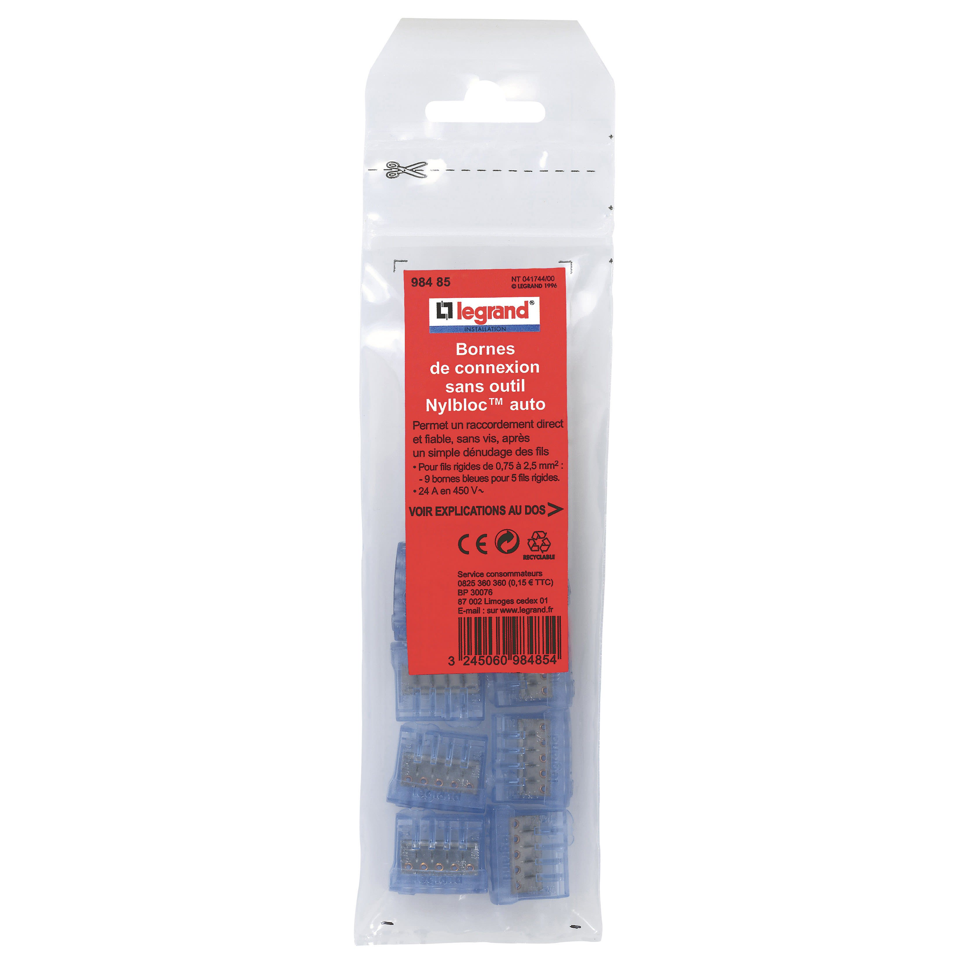 Legrand - Borne de connexion Nylbloc auto pour fils rigides - 9 bornes bleues pour 5 fils - 098485