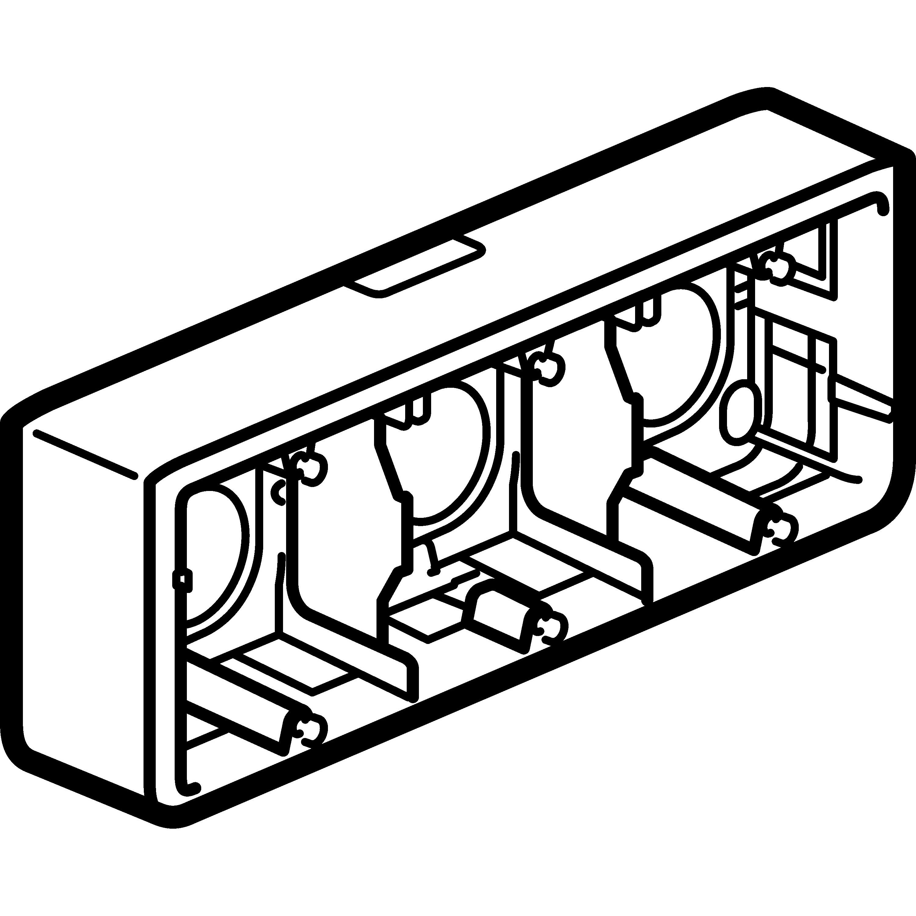 Cadre saillie Mosaic 6 modules, 8 modules ou 3x2 modules en montage horizontal - A utiliser avec le support Batibox référence 080253 Profondeur 40mm Equipé d'une entrée amovible pour moulure 32x12,5mm - Installation en saillie avec conduits apparents (moulure/goulotte) ou avec conduits encastrés Livré avec vis Blanc RAL9003 finition brillante