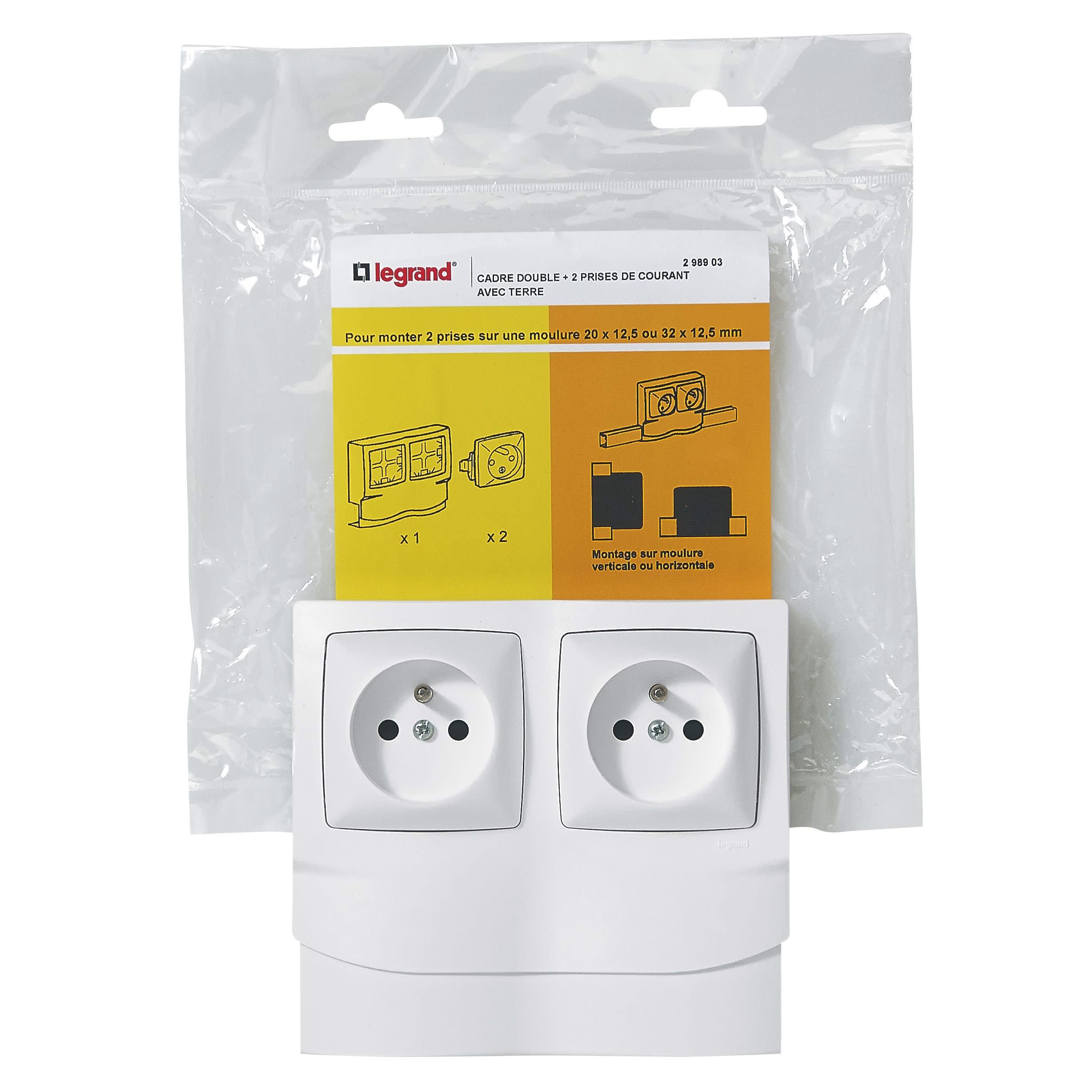 Legrand - Cadre saillie 2 postes avec 2 prises de courant pour moulure 12,5mm - 298903