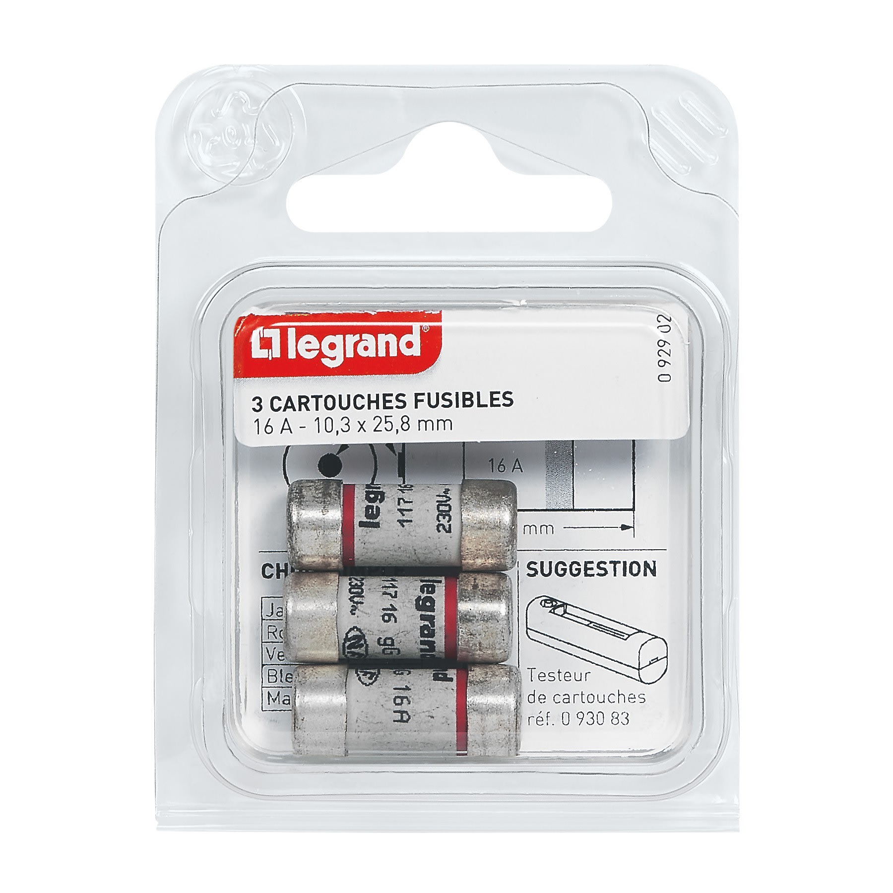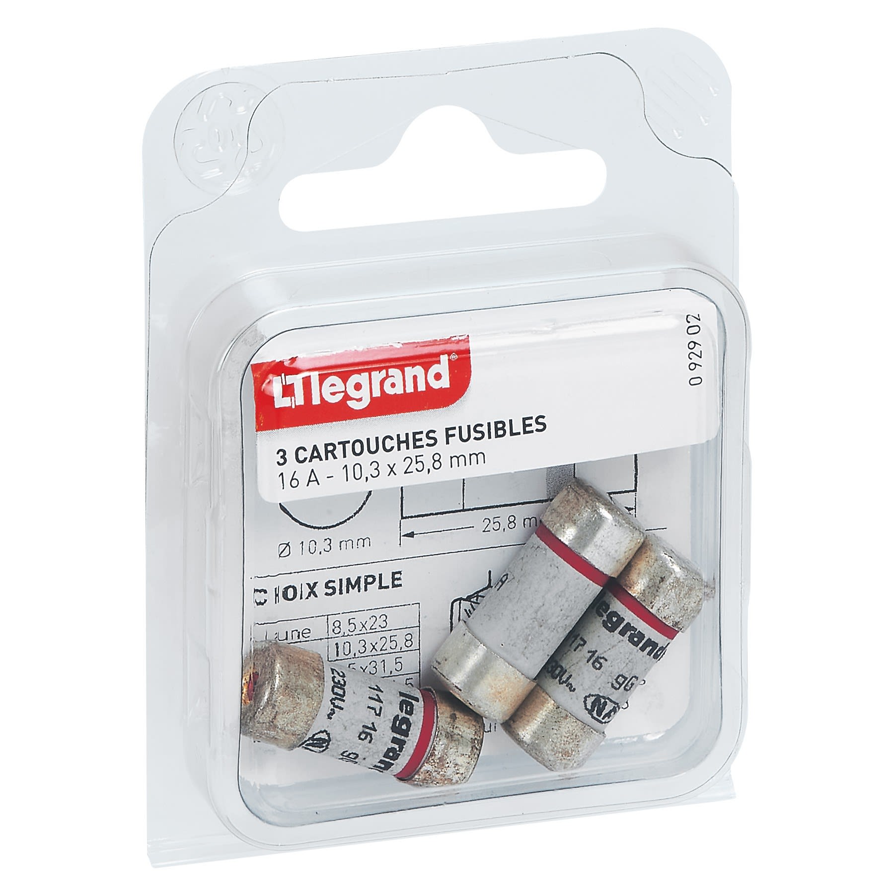 Legrand - Cartouches fusibles pour porte-fusibles - avec témoin - 10,3x25,8mm - 16A - 092902