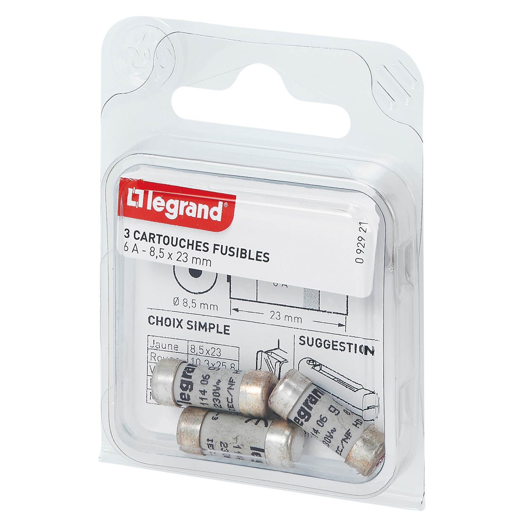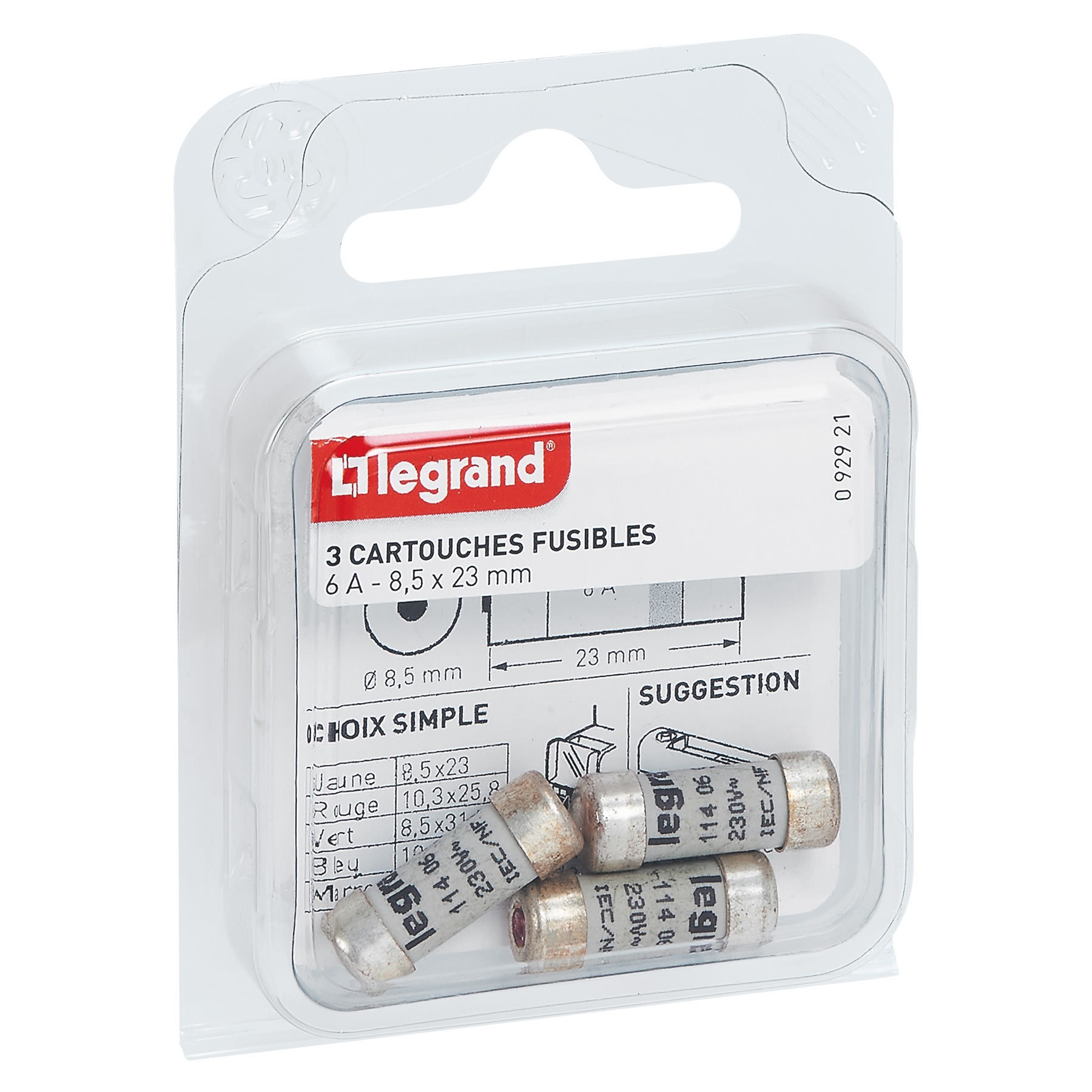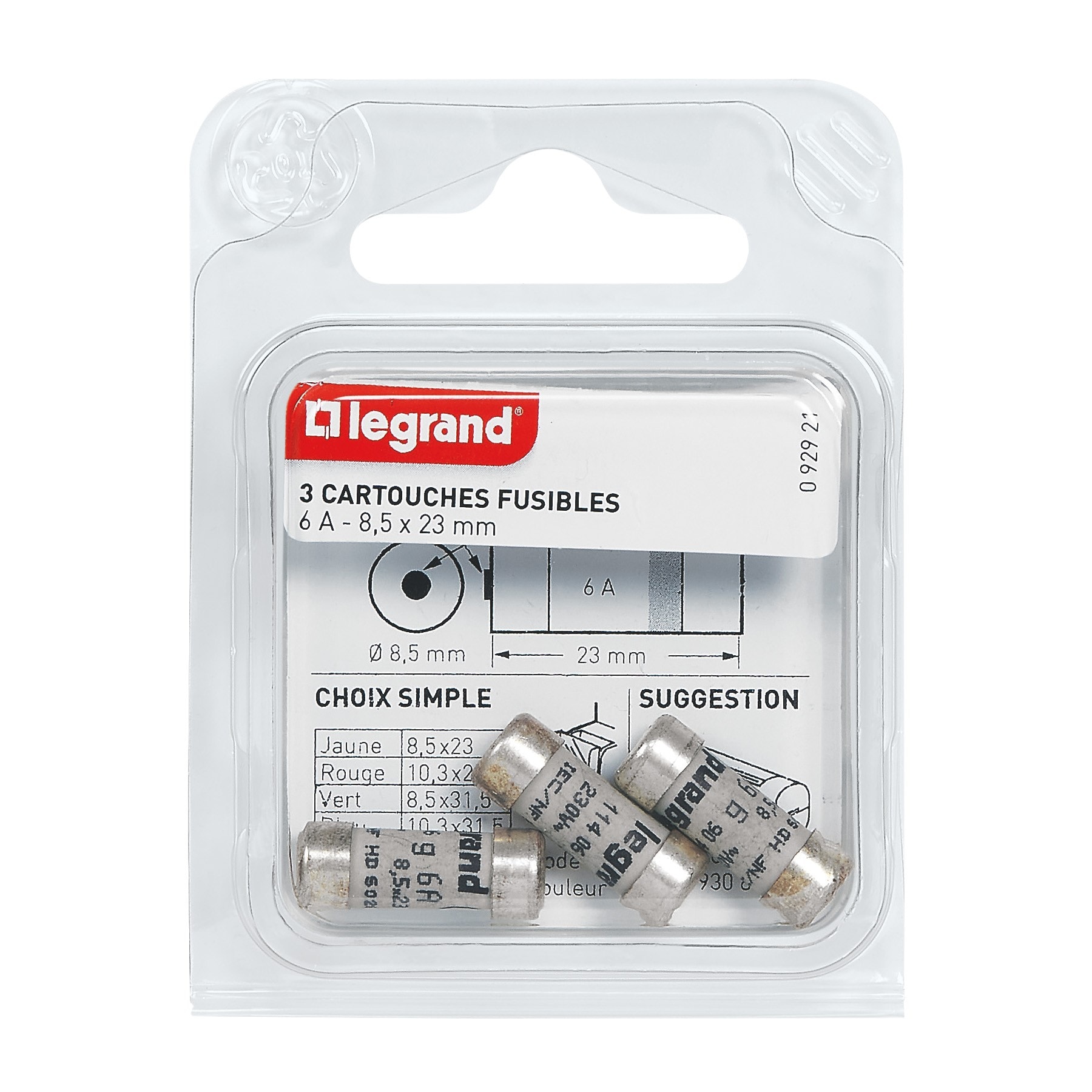 Legrand - Cartouches fusibles pour porte-fusibles - avec témoin - 8,5x23mm - 6A - 092921