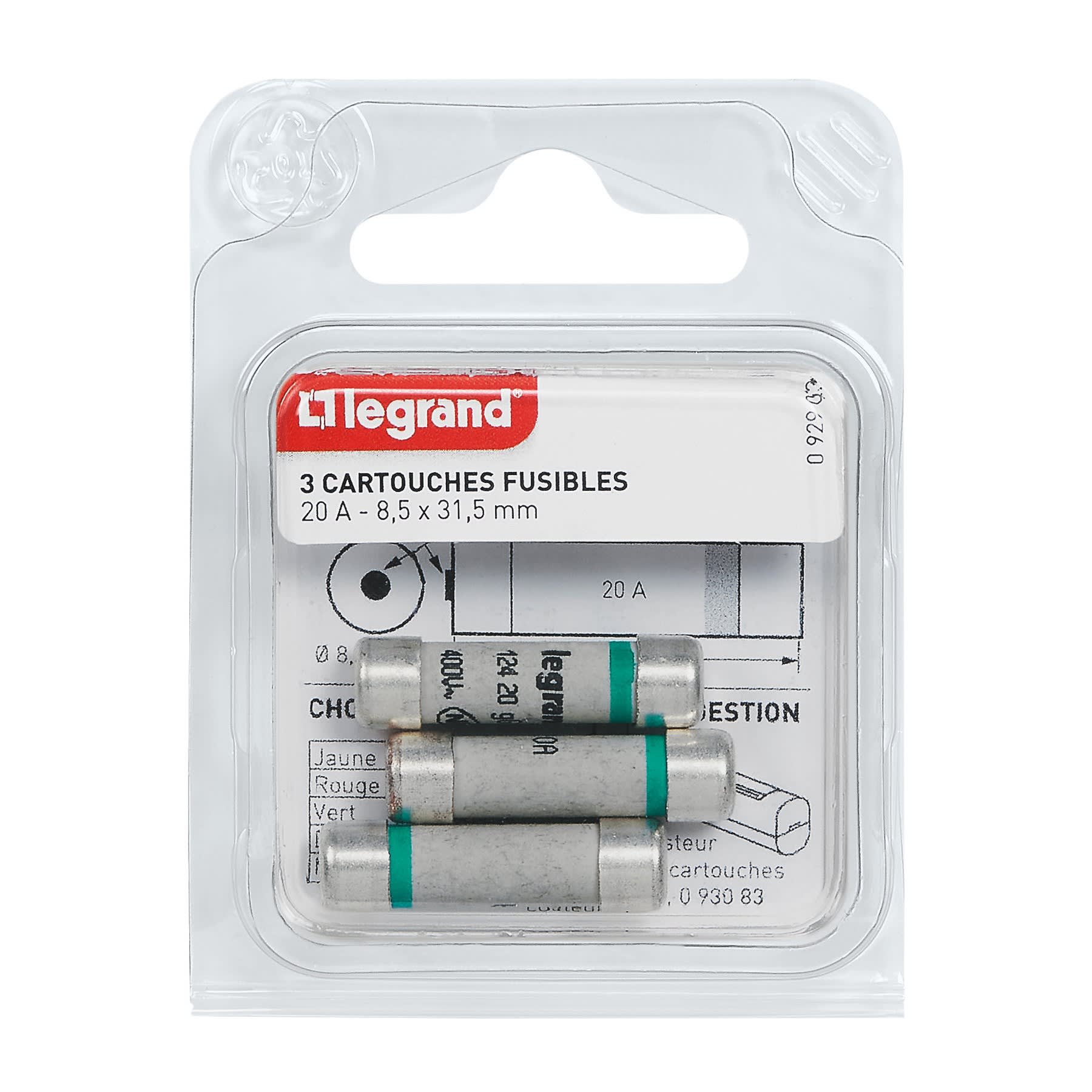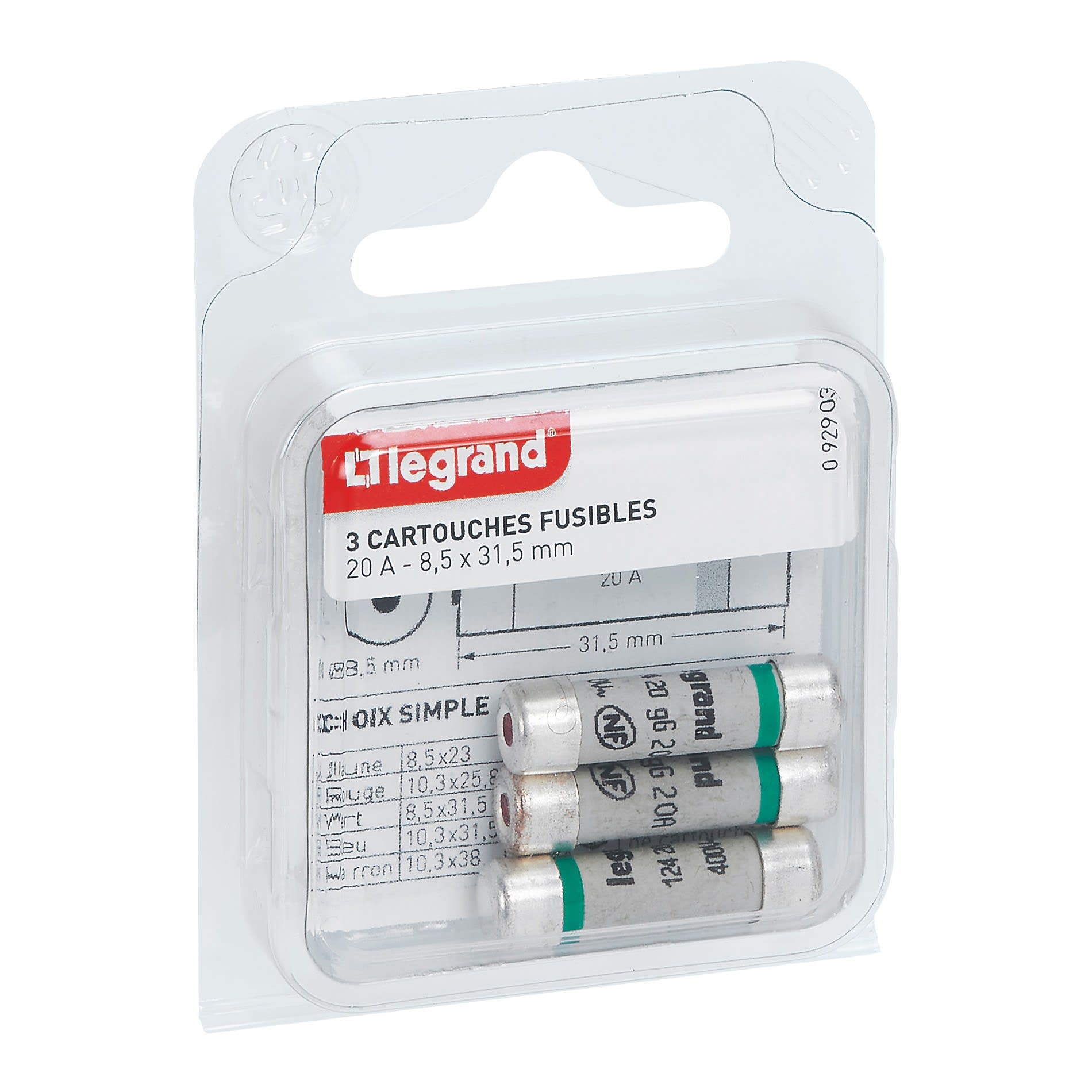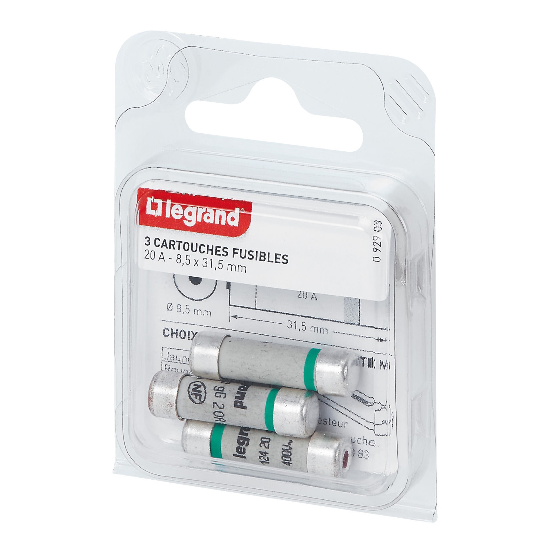 Legrand - Cartouches fusibles pour porte-fusibles - avec témoin - 8,5x31,5mm - 20A - 092903