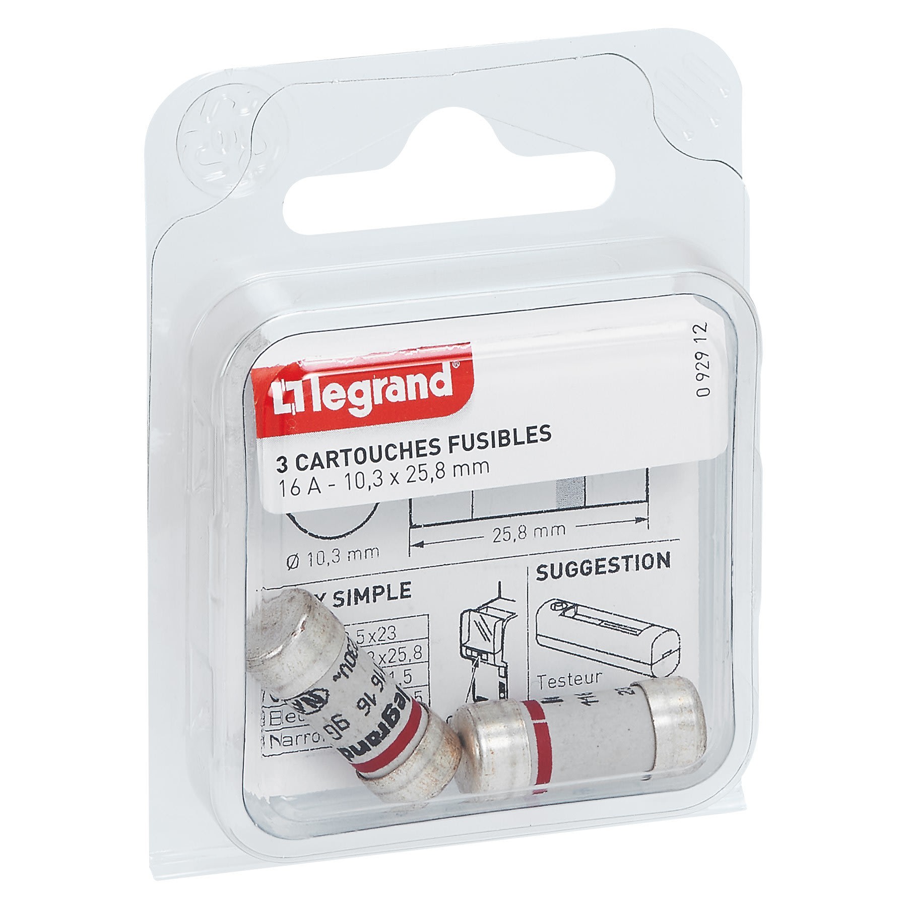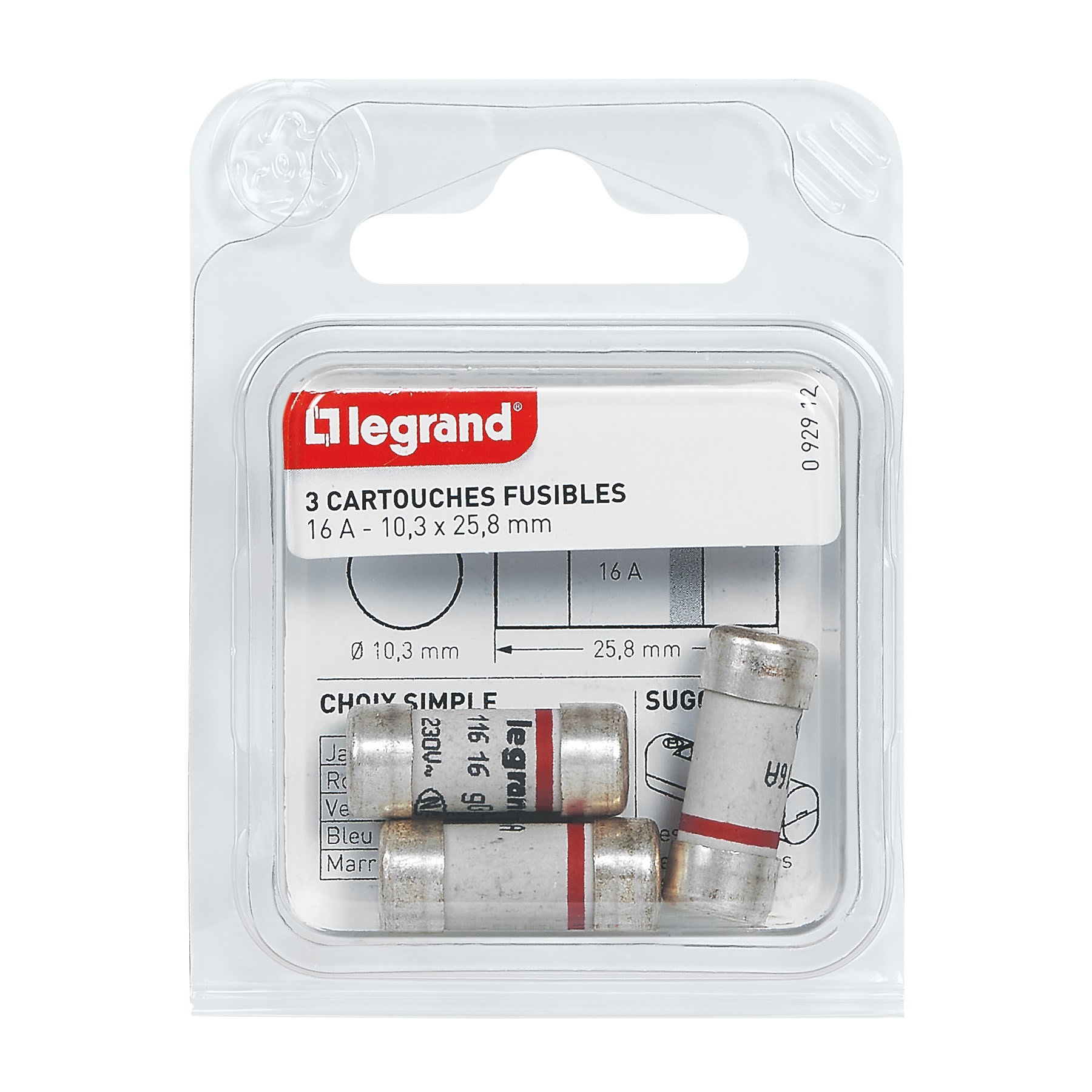 Legrand - Cartouches fusibles pour porte-fusibles - sans témoin - 10,3x25,8mm - 16A - 092912