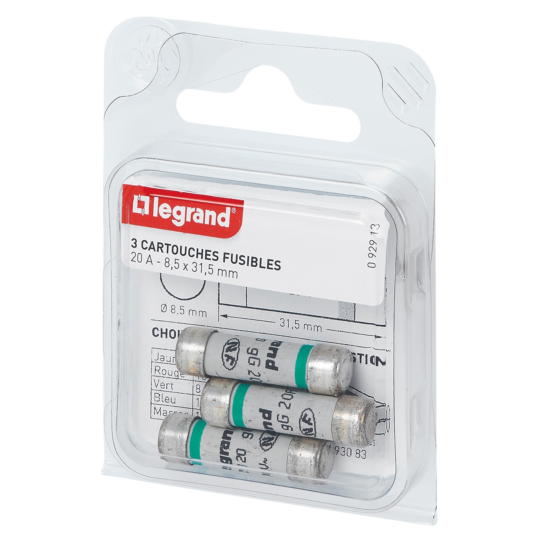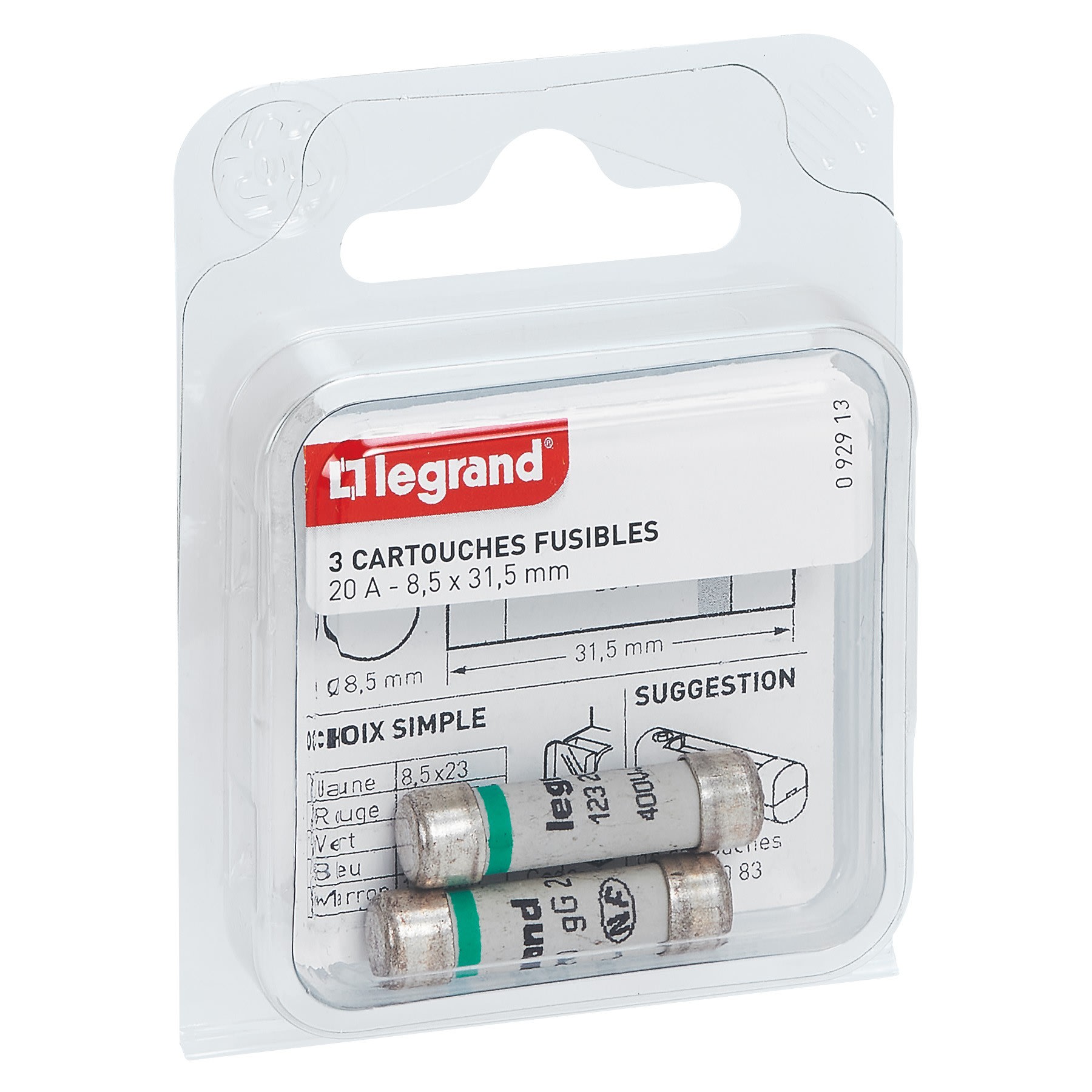 Legrand - Cartouches fusibles pour porte-fusibles - sans témoin - 8,5x31,5mm - 20A - 092913
