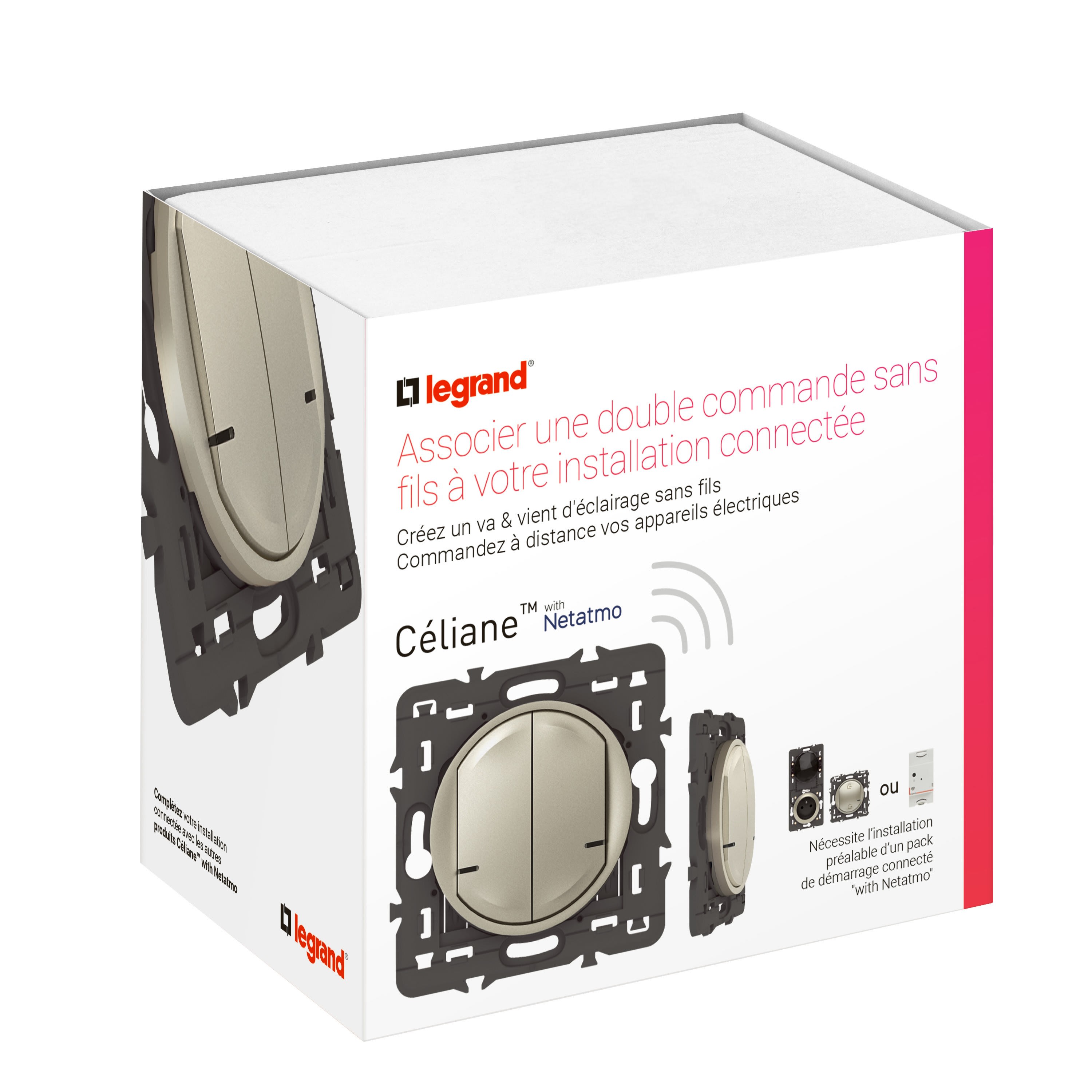 Legrand - Cde double sans fils éclairage/prise Céliane with Netatmo sans plaque titane - 067774A