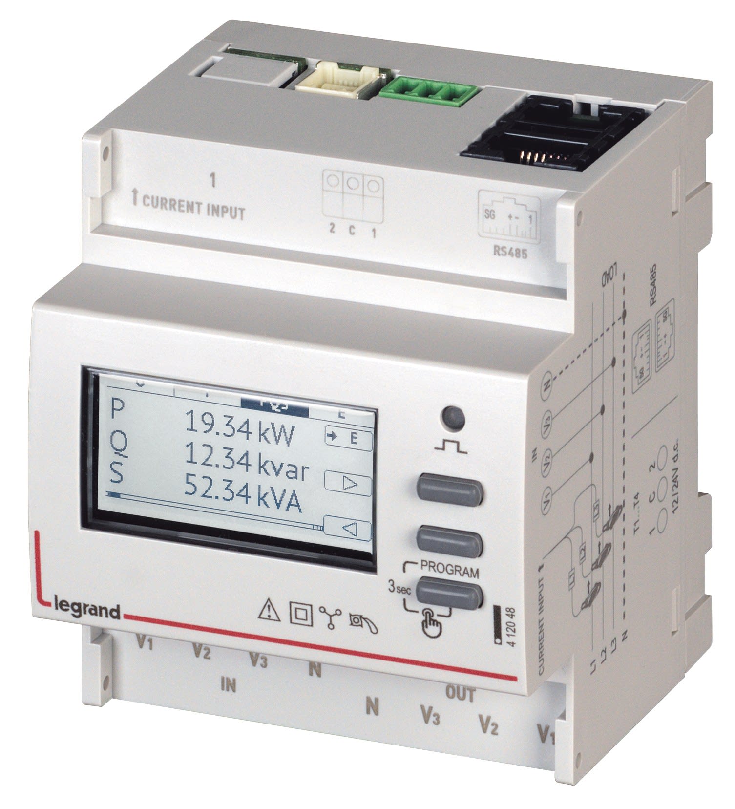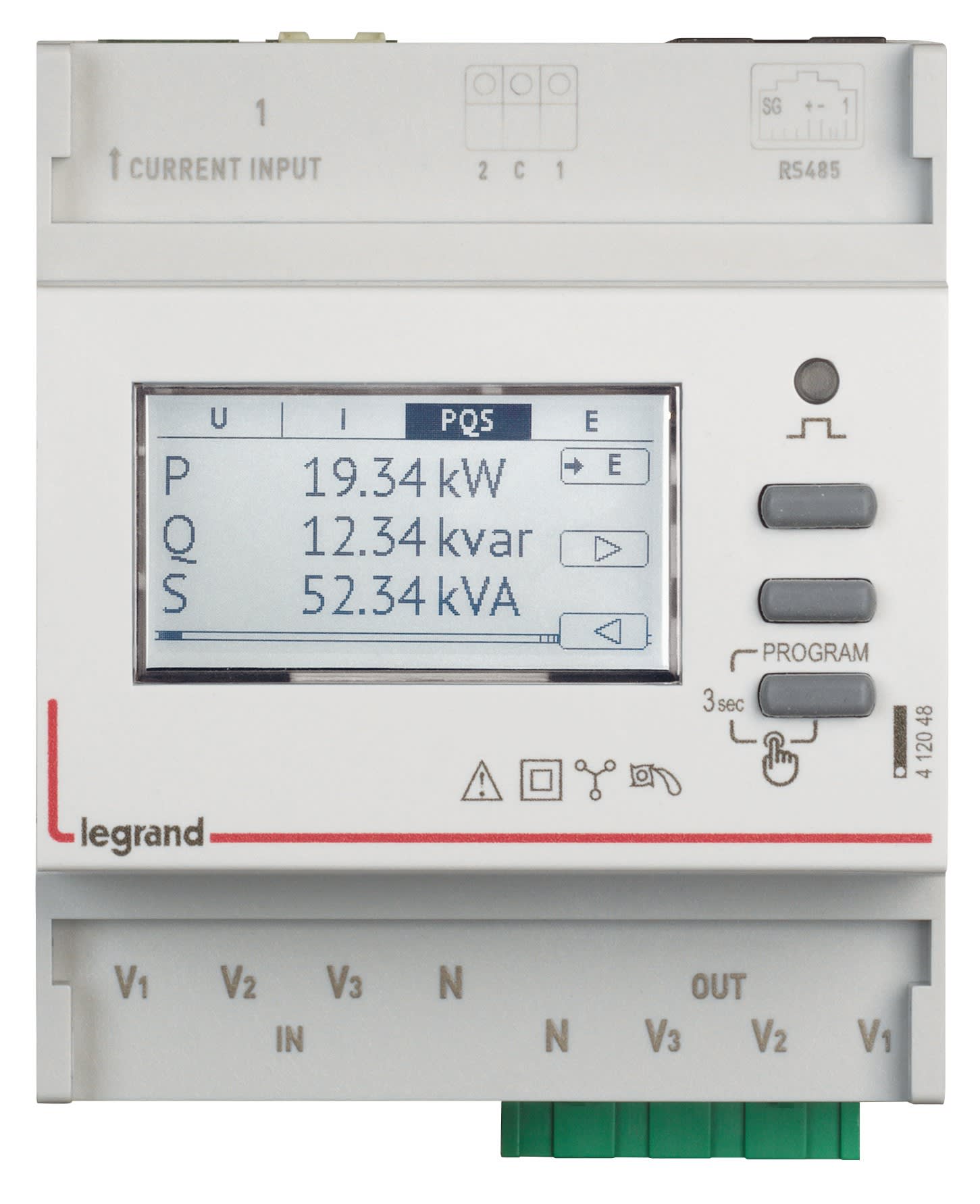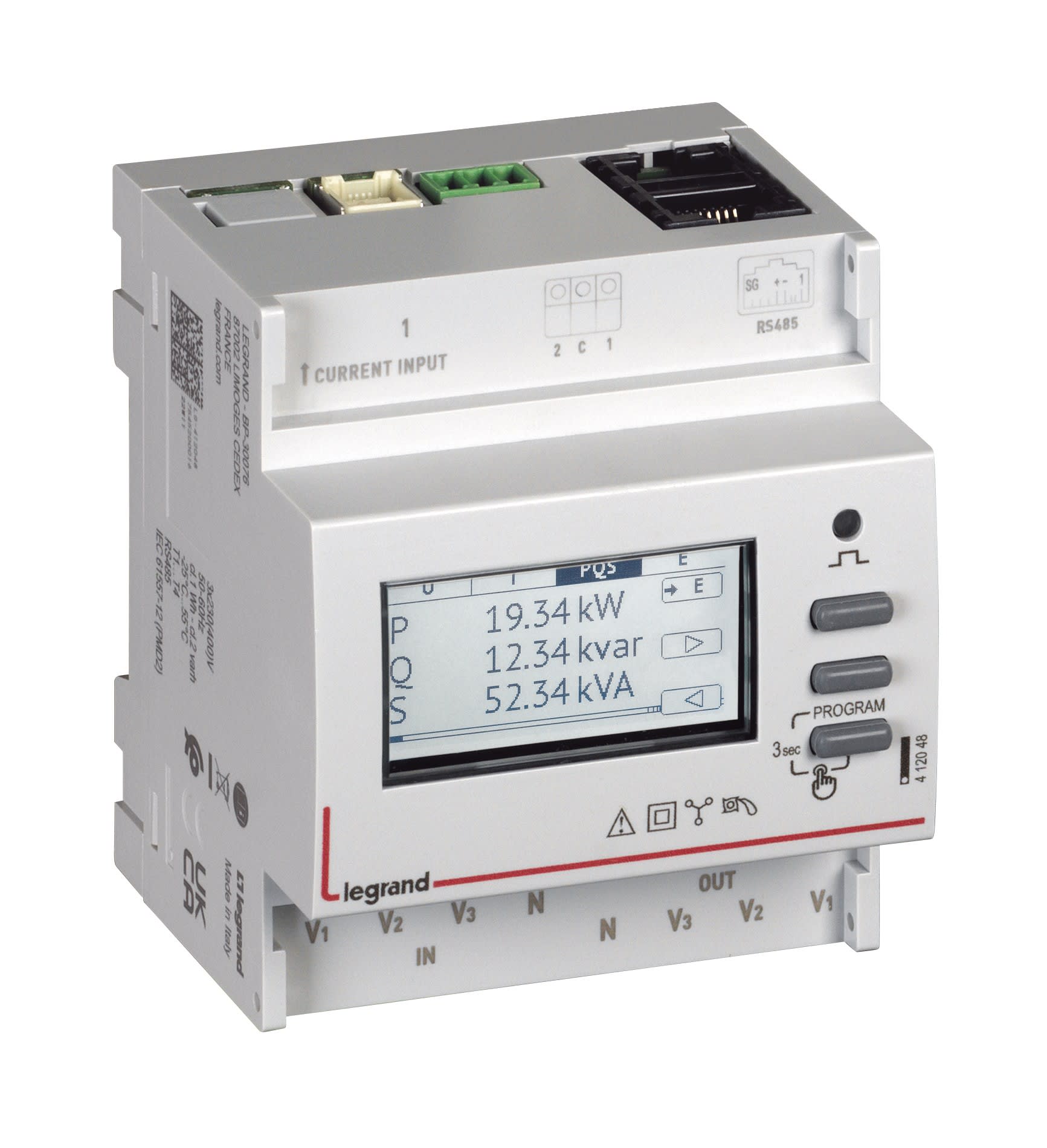 Appareil multifonction bidirectionnel avec capteurs de courant ouvrants de 630A à 6300A pour réseaux triphasés 3 fils ou 4 fils Mesures effectuées par le dispositif :- Tension de phase et composée- Tension minimum et maximum- THD Tensions (jusqu'à 15)- Courant de phase- Courant du neutre- Courant moyen de phase- Pic courant moyen de phase- Moyenne des 3 courants Sortie MODBUS 4 modules DIN Conforme aux normes IEC 61557-12, IEC 62053-22 classe 0,5 et IEC 62053-23 classe 1 et classe 2