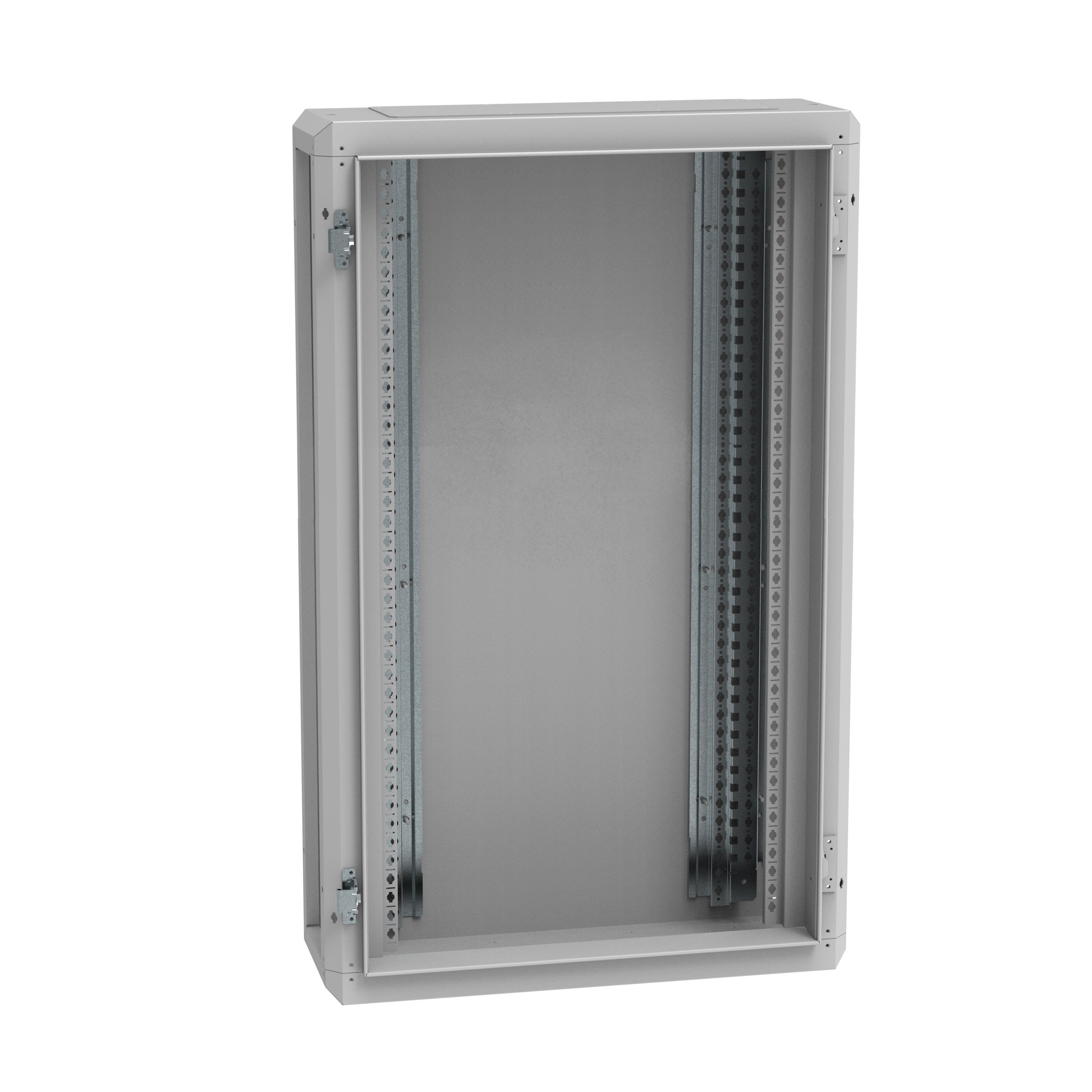Dimensions extérieures : hauteur 1146mm - largeur 706mm - profondeur 252mm IP55 - IK08 avec porte Structure soudée et montants fonctionnels vissés à l'arrière du coffret pour une plus grande rigidité Panneaux à commander séparément Revêtement époxy polyester RAL7035