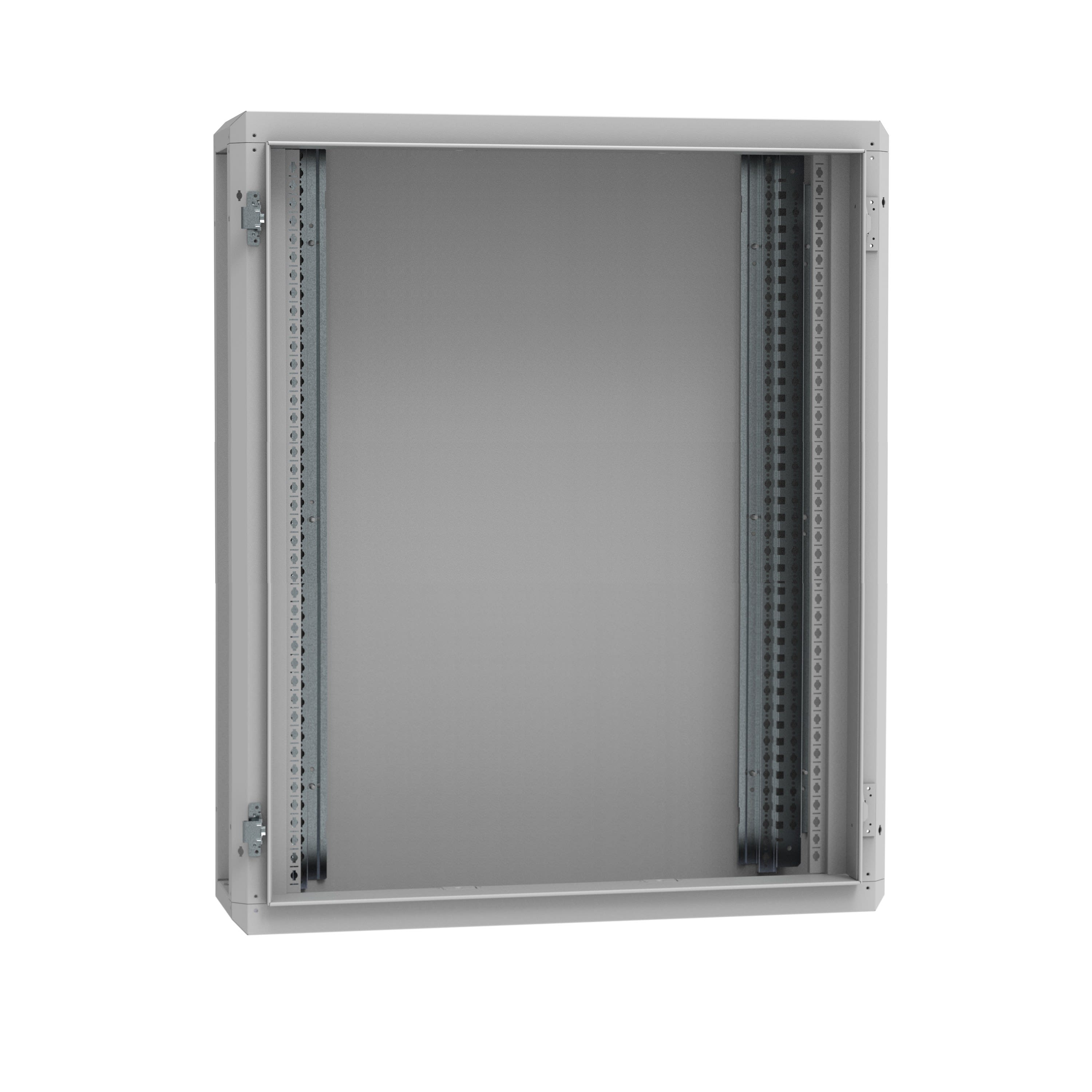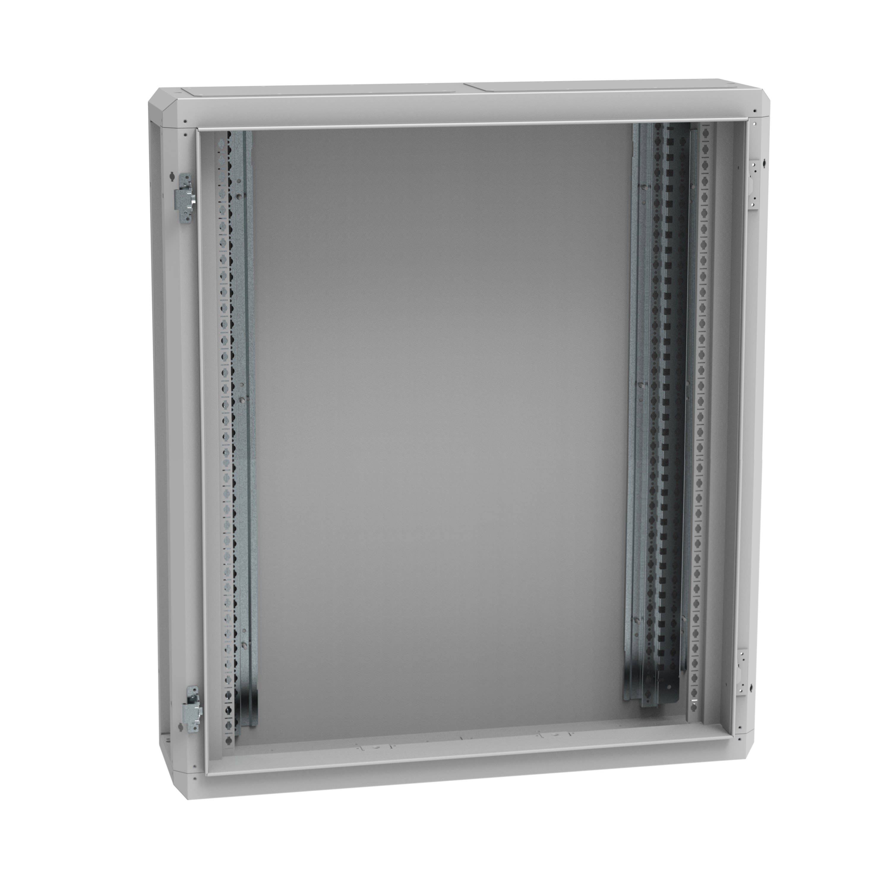 Dimensions extérieures : hauteur 1146mm - largeur 956mm - profondeur 252mm IP55 - IK08 avec porte Structure soudée et montants fonctionnels vissés à l'arrière du coffret pour une plus grande rigidité Panneaux à commander séparément Revêtement époxy polyester RAL7035