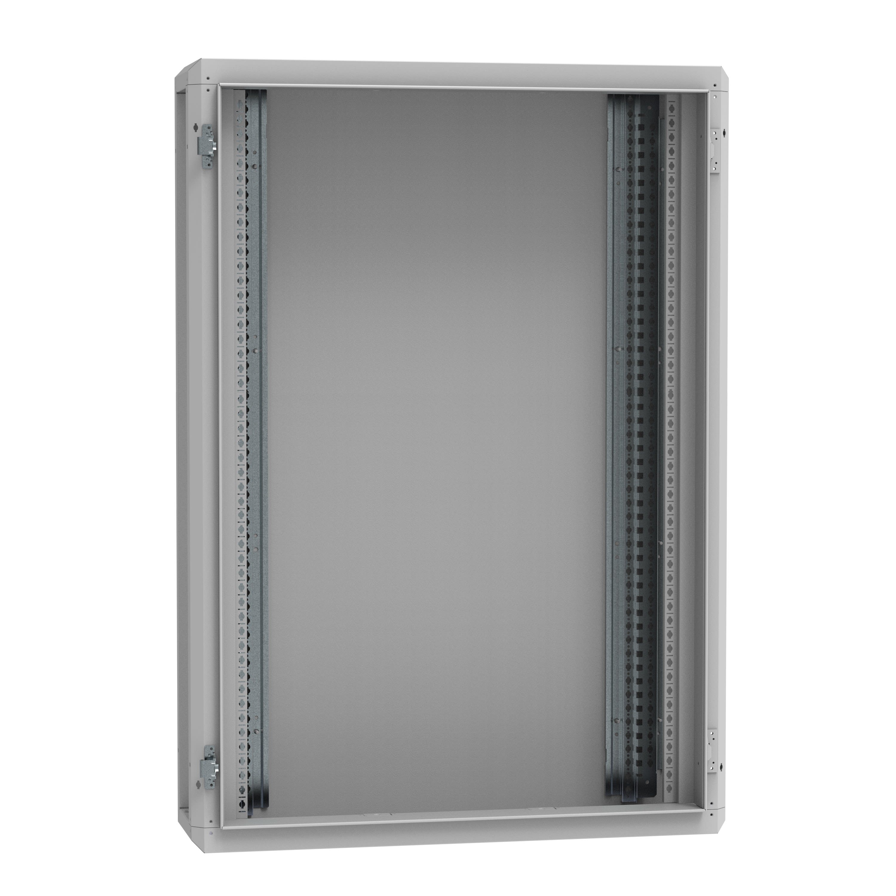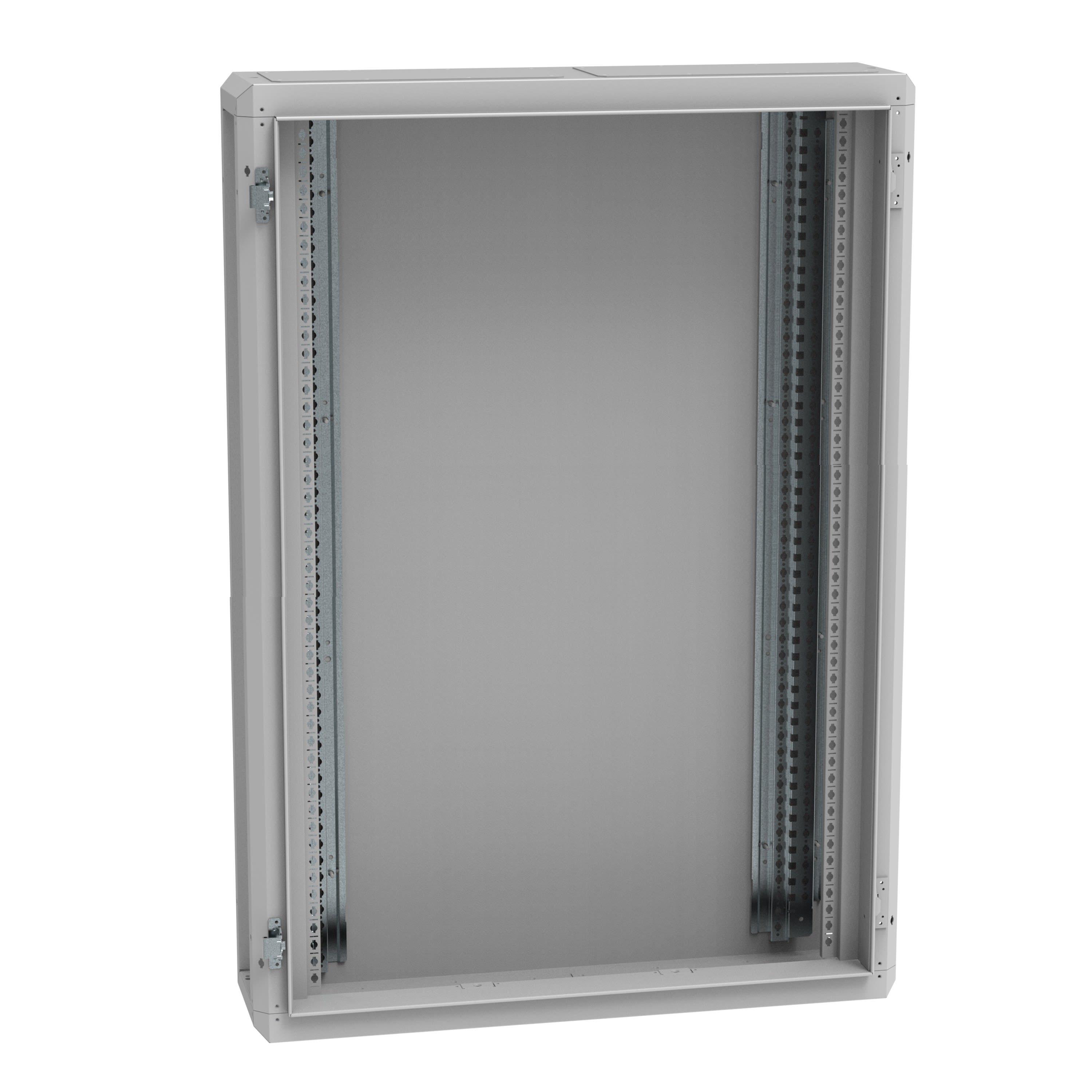 Dimensions extérieures : hauteur 1446mm - largeur 956mm - profondeur 252mm IP55 - IK08 avec porte Structure soudée et montants fonctionnels vissés à l'arrière du coffret pour une plus grande rigidité Panneaux à commander séparément Revêtement époxy polyester RAL7035