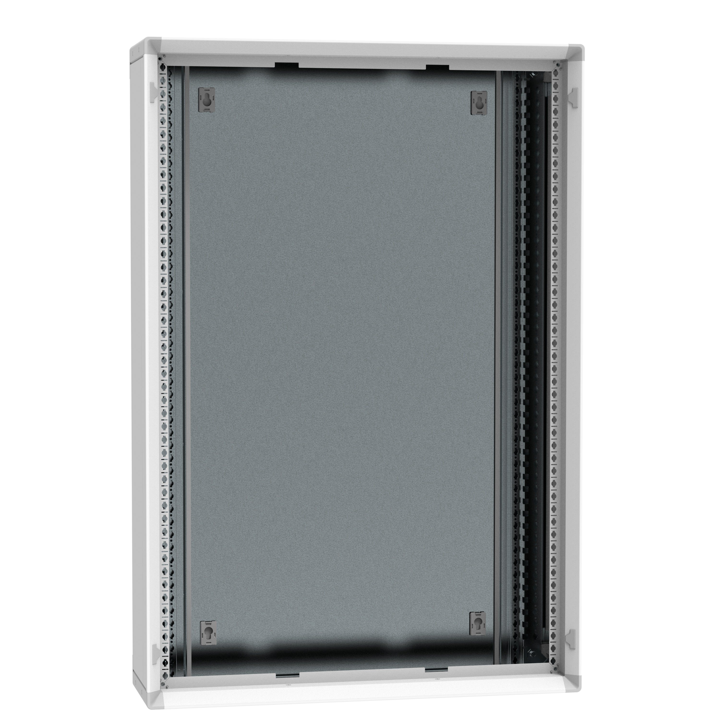 Dimensions extérieures : hauteur 1256mm - largeur 850mm - profondeur 231mm IP30 - IK07 avec plastron et sans porte Montants fonctionnels fixés à l'arrière du coffret pour plus de rigidité À assembler - Tous les côtés sont amovibles pour faciliter l'assemblage et l'installation Revêtement époxy polyester RAL7035