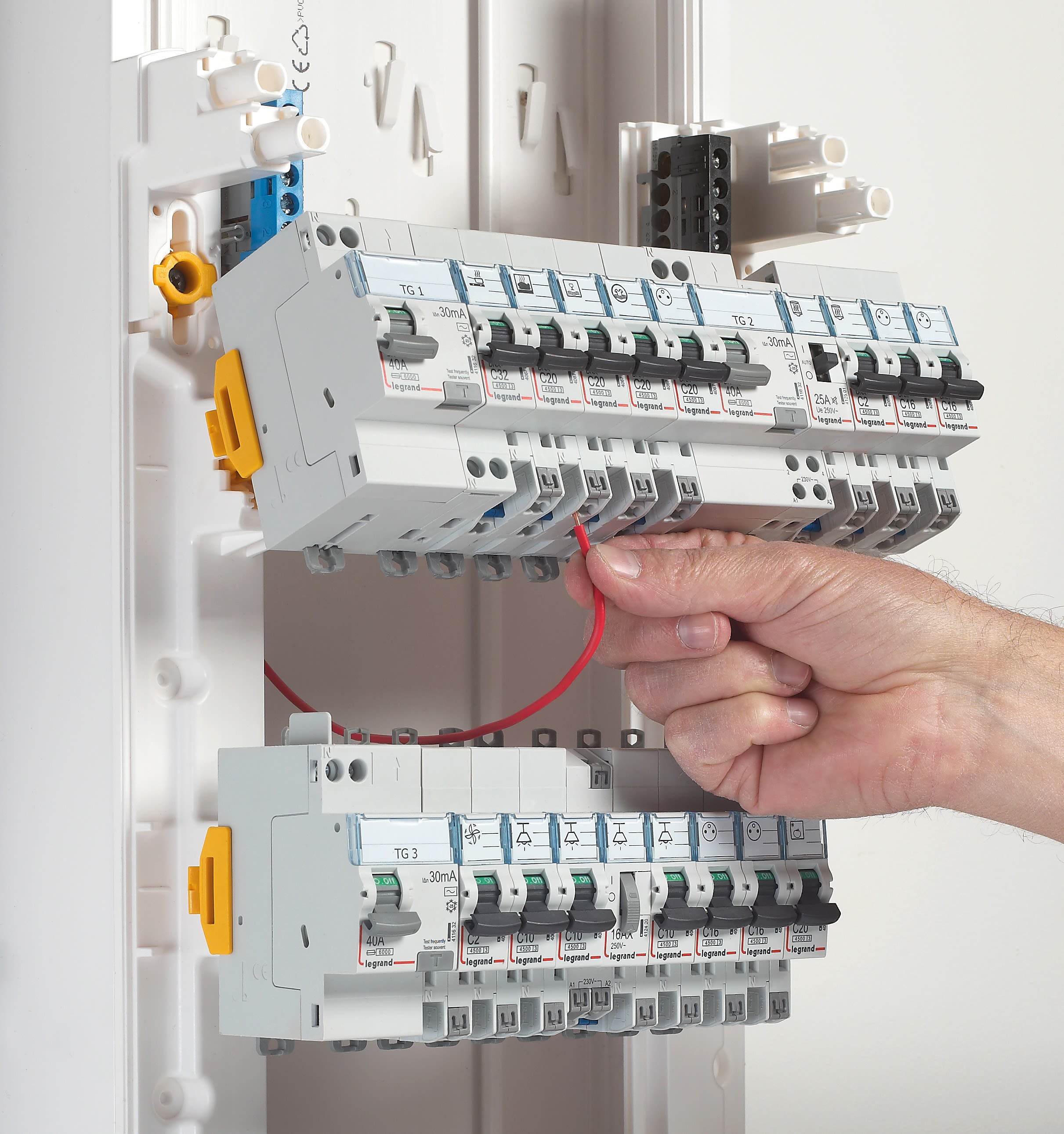 Tableau électrique et coffret de communication DRIVIA™ : complet et innovant. Les coffrets 13 et 18 modules par rangée peuvent être installés en résidentiel ou en petit tertiaire grâce à sa conformité à la réglementation des ERP (Etablissements Recevant du Public) et des IGH (Immeubles de Grande Hauteur). L'installation peut se faire directement au mur, ou sur goulotte GTL en saillie ou en encastré grâce aux connecteurs Drivia™ Clip. Il est également possible de jumeler des coffrets à la verticale ou à l'horizontale avec des cavaliers de liaison Drivia™ Easy. La fixation est facile et rapide grâce à l'accessoire DRIVIA clip qui permet une fixation du chassis du coffret sur la goulotte GTL et son réglage en hauteur. Le câblage dans le coffret est facilité grâce au rail extractible par simples clips latéraux et par les rails inclinables en position basse ou haute pour accès facilité au connectiques des produits. Le coffret de communication DRIVIA permet la répartition des médias dans la même esthétique que le tableau électrique pour plus d'homogénéité dans le logement : différentes compositions (en kit ou vrac) sont proposées à la vente.