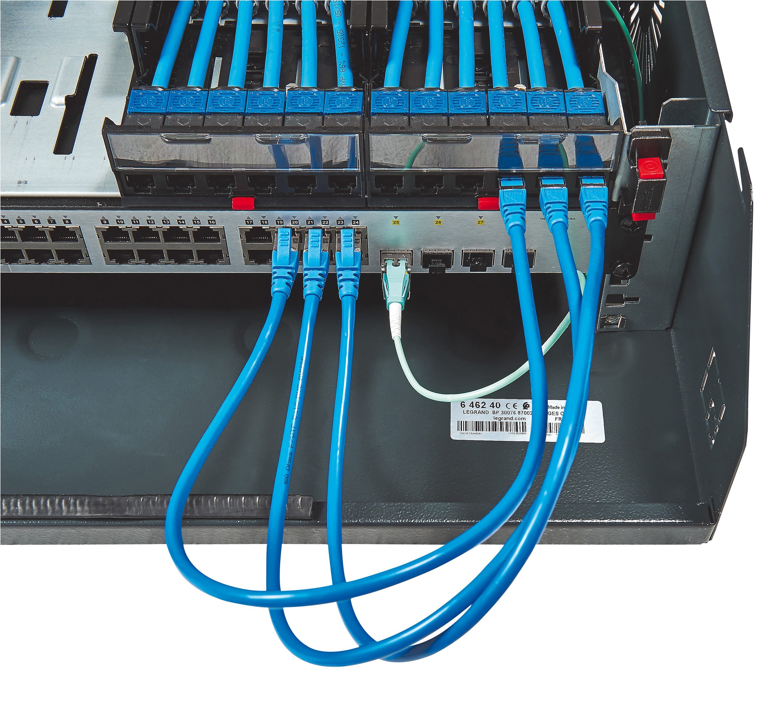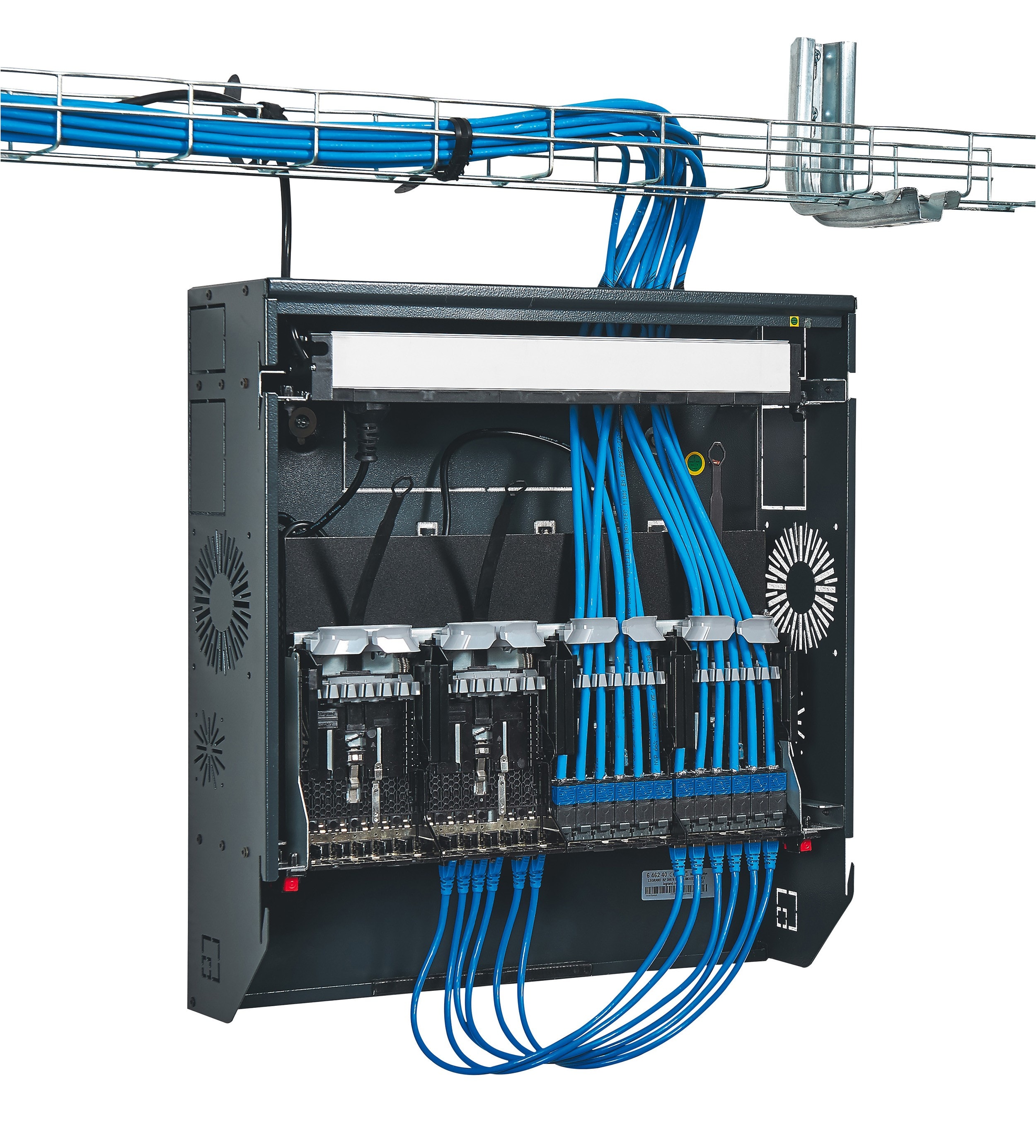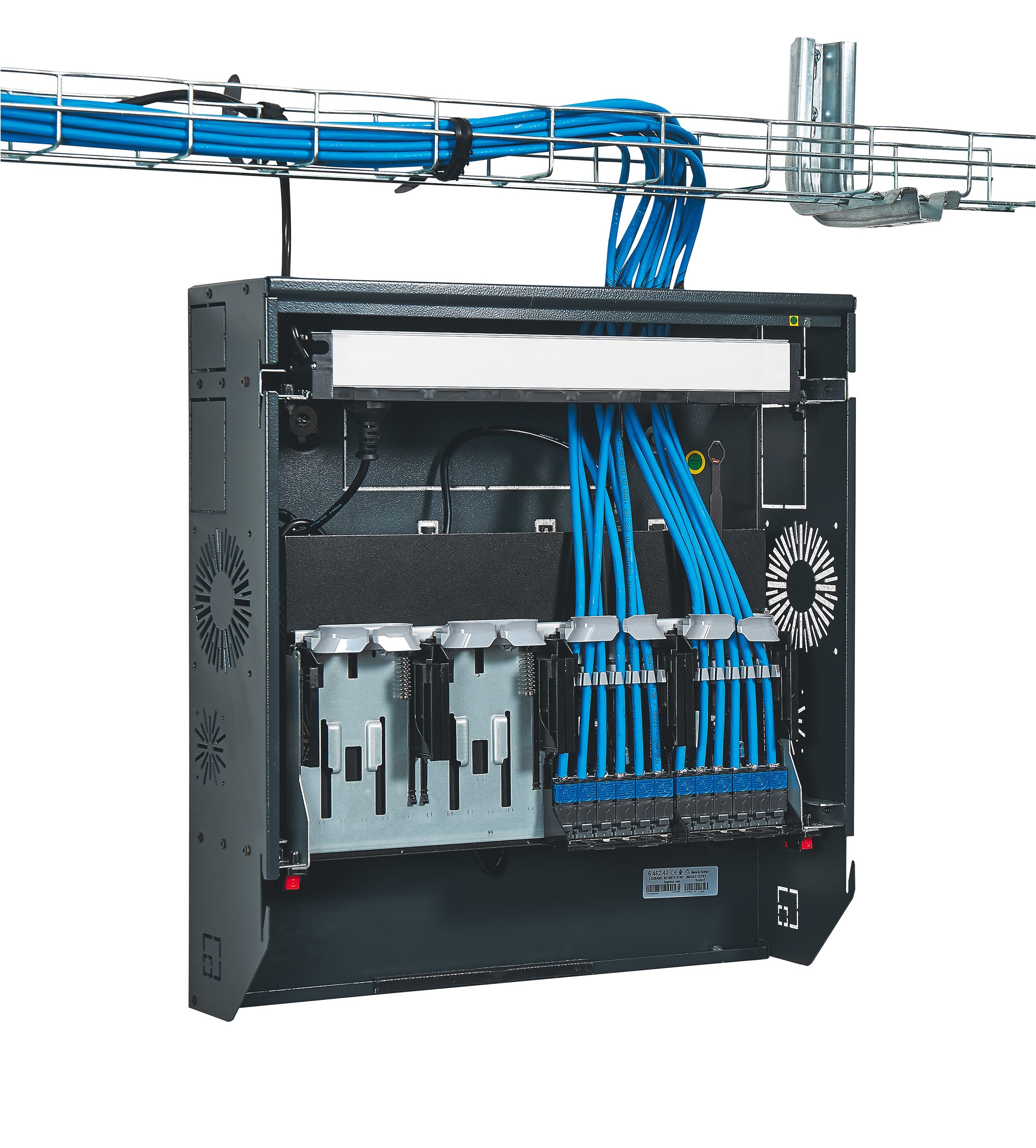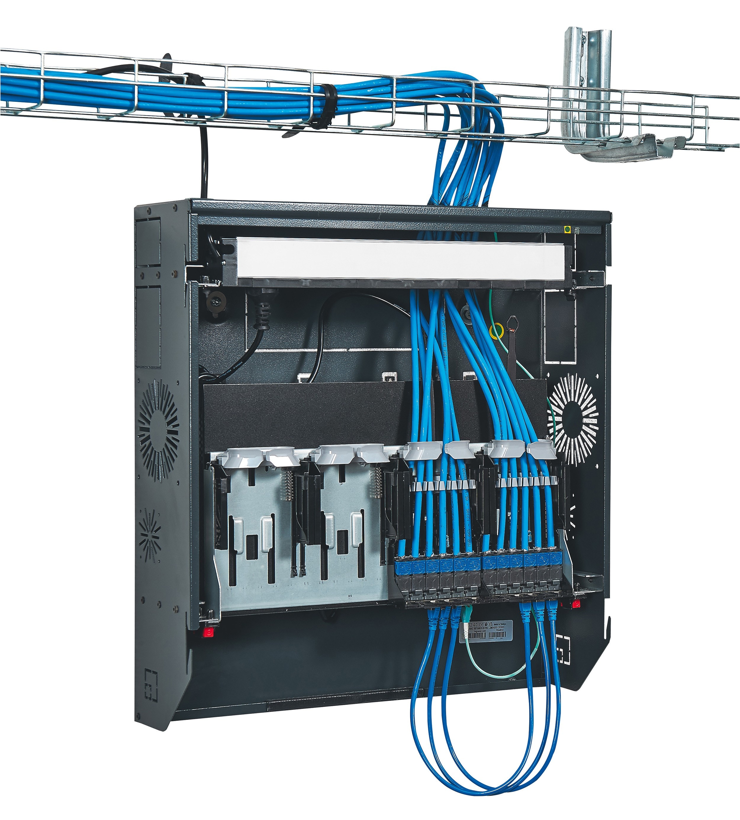 Les baies et coffrets Linkeo sont destinés aux infrastructures numériques pour les installations à petit budget, avec des armoires et des coffrets robustes permettant un câblage sécurisé. D'une charge admissible de 400 kg, les armoires 19'' associables IP 20 - IK 08 ont une porte avant réversible avec regard en verre de sécurité. Elles sont équipées de 2 montants 19'' réglables en profondeur. Leurs panneaux latéraux et arrière sont démontables. Les coffrets 19" fixes ou pivotants sont équipés d'une porte plate réversible en verre de sécurité avec serrure intégrée. Leur fixation au mur se fait rapidement en deux étapes : fond + coffret. Les coffrets 10" pour petit tertaire sont livrés montés. Toutes ces enveloppes peuvent être équipées avec des accessoires dédiés qui vont permettre de répondre à tous les besoins des chantiers.