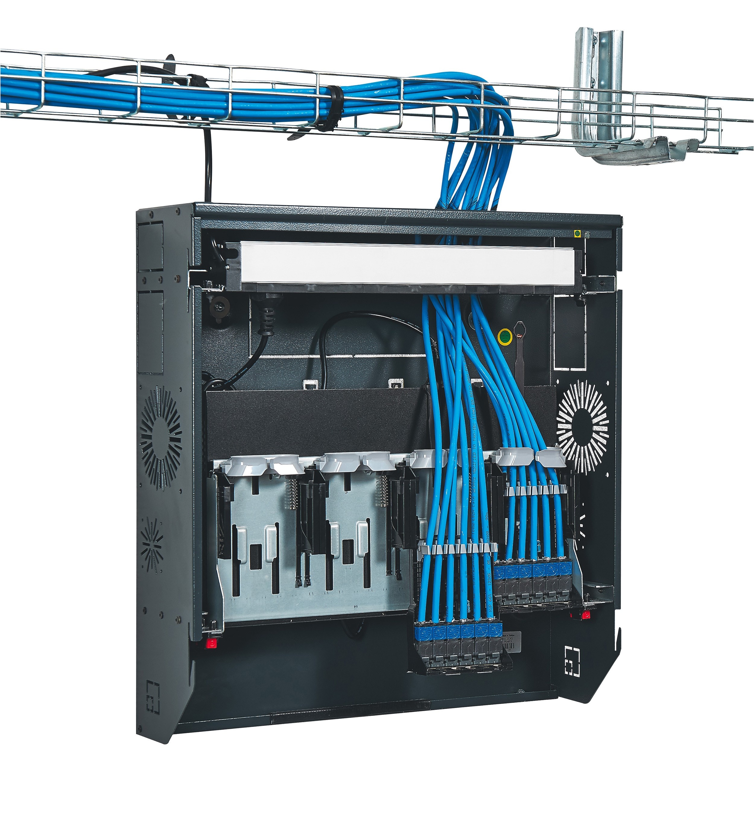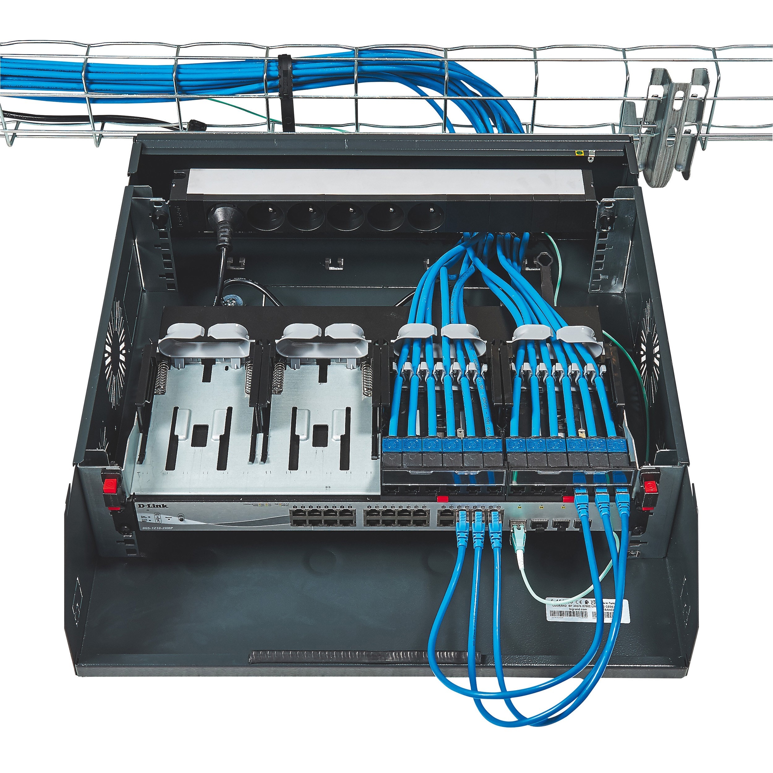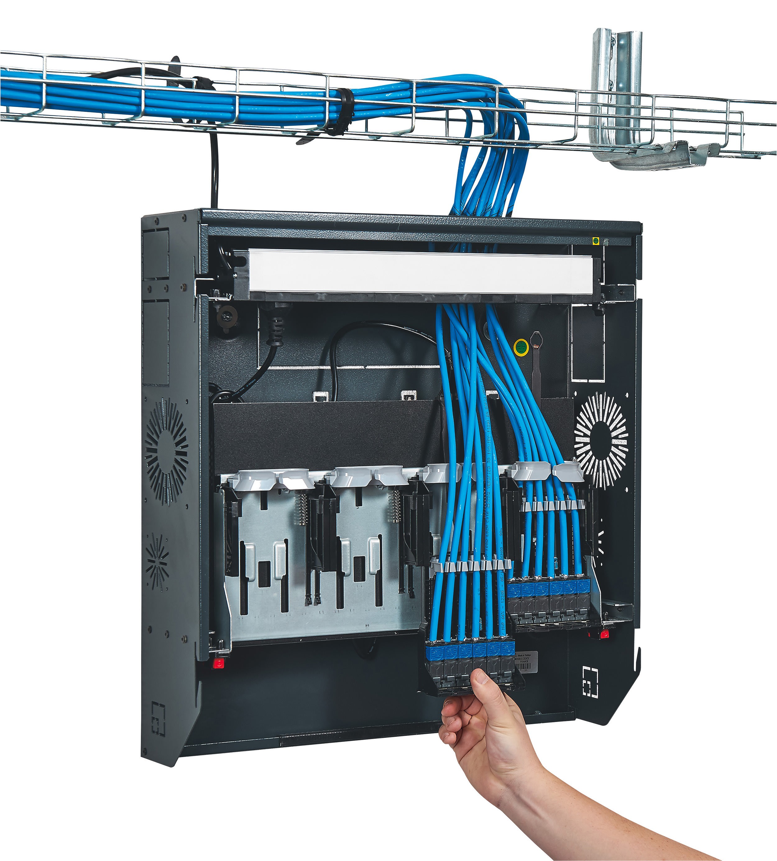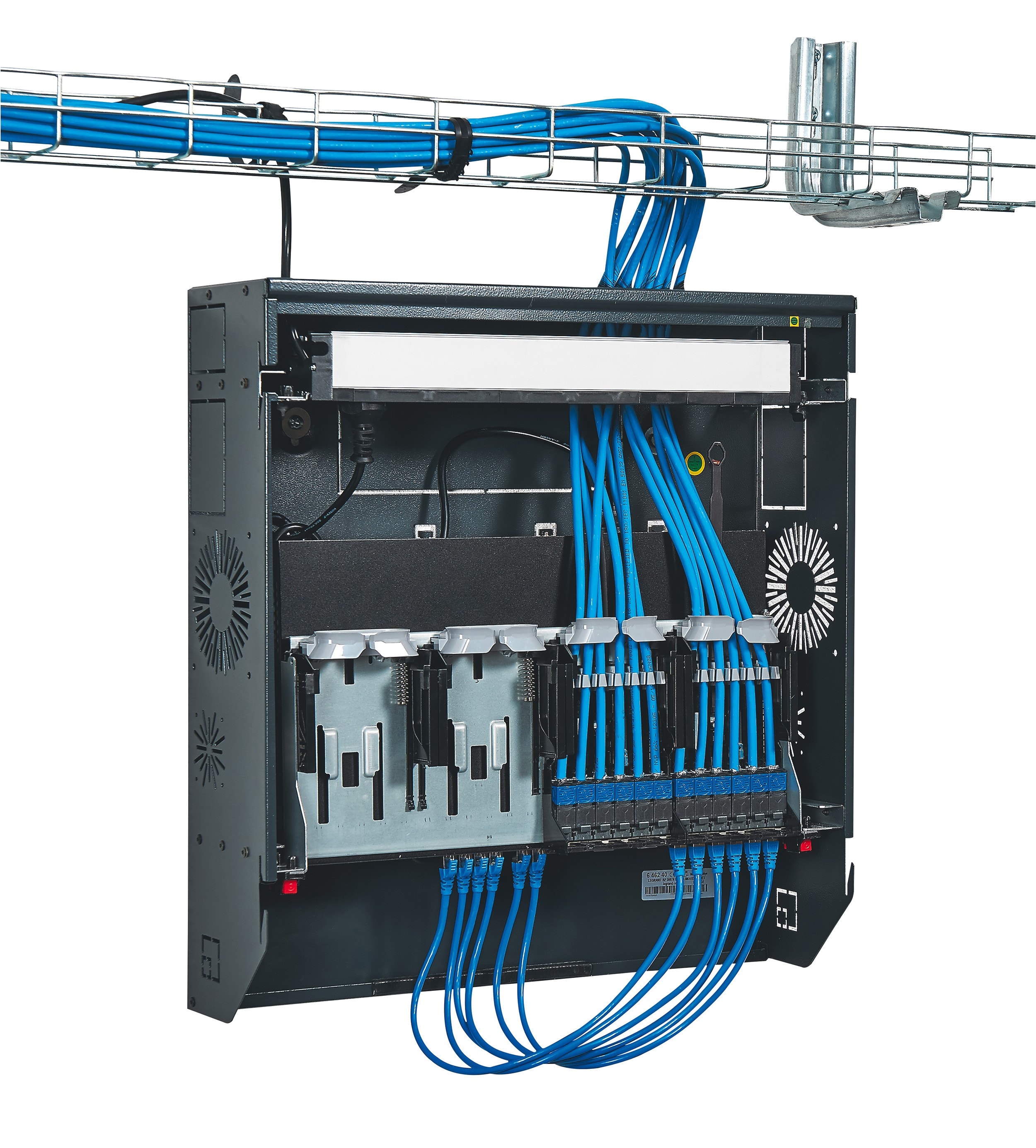 Les baies et coffrets Linkeo sont destinés aux infrastructures numériques pour les installations à petit budget, avec des armoires et des coffrets robustes permettant un câblage sécurisé. D'une charge admissible de 400 kg, les armoires 19'' associables IP 20 - IK 08 ont une porte avant réversible avec regard en verre de sécurité. Elles sont équipées de 2 montants 19'' réglables en profondeur. Leurs panneaux latéraux et arrière sont démontables. Les coffrets 19" fixes ou pivotants sont équipés d'une porte plate réversible en verre de sécurité avec serrure intégrée. Leur fixation au mur se fait rapidement en deux étapes : fond + coffret. Les coffrets 10" pour petit tertaire sont livrés montés. Toutes ces enveloppes peuvent être équipées avec des accessoires dédiés qui vont permettre de répondre à tous les besoins des chantiers.