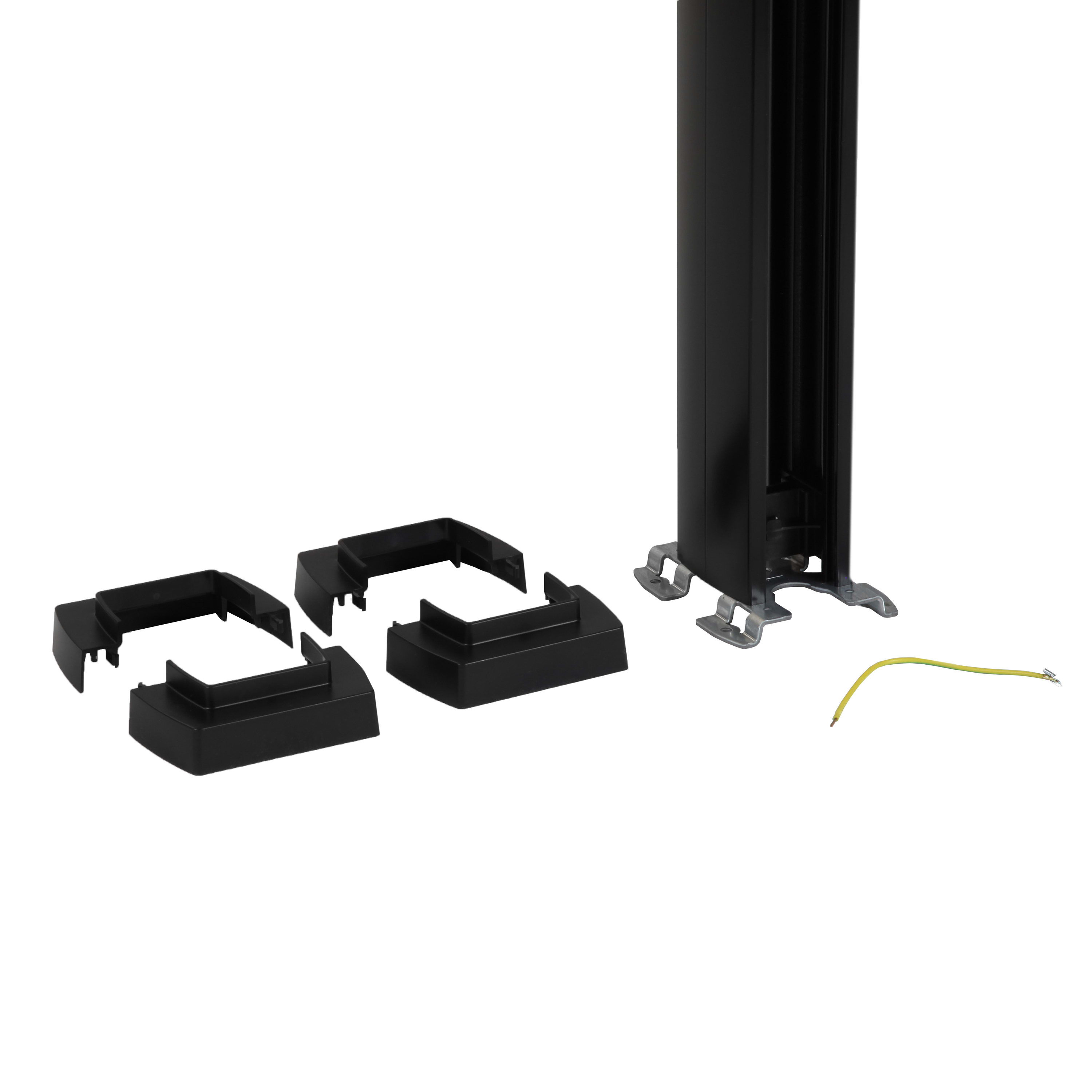 Colonne à clippage direct, 1 compartiment 2 faces avec couvercle largeur 45mm - Hauteur 3,92m Couvercle PVC et corps en alu - Noir RAL9017 A équiper des prises Mosaic Link Peut s'adapter à une hauteur de plafond de 5,10m maximum IK7 système (corps+couvercle) - IK8 pour le corps aluminium - Conforme aux normes IEC 61084-2-4 et EN 50085-2-4