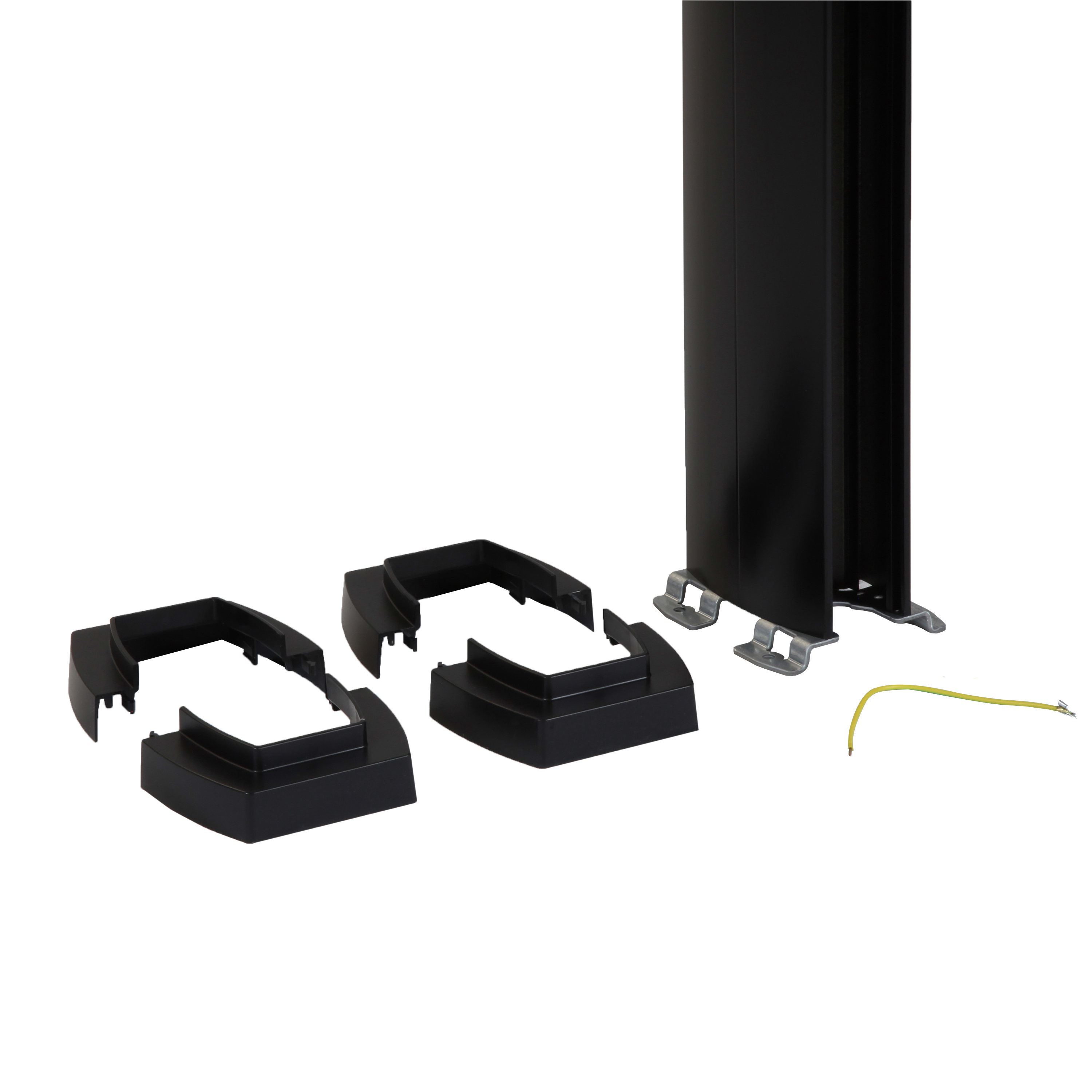 Colonne à clippage direct, 2 compartiments avec couvercle largeur 45mm - Hauteur 3,92m Couvercle PVC et corps en alu - Noir RAL9017 A équiper des prises Mosaic Link Peut s'adapter à une hauteur de plafond de 5,10m maximum IK7 système (corps+couvercle) - IK8 pour le corps aluminium - Conforme aux normes IEC 61084-2-4 et EN 50085-2-4