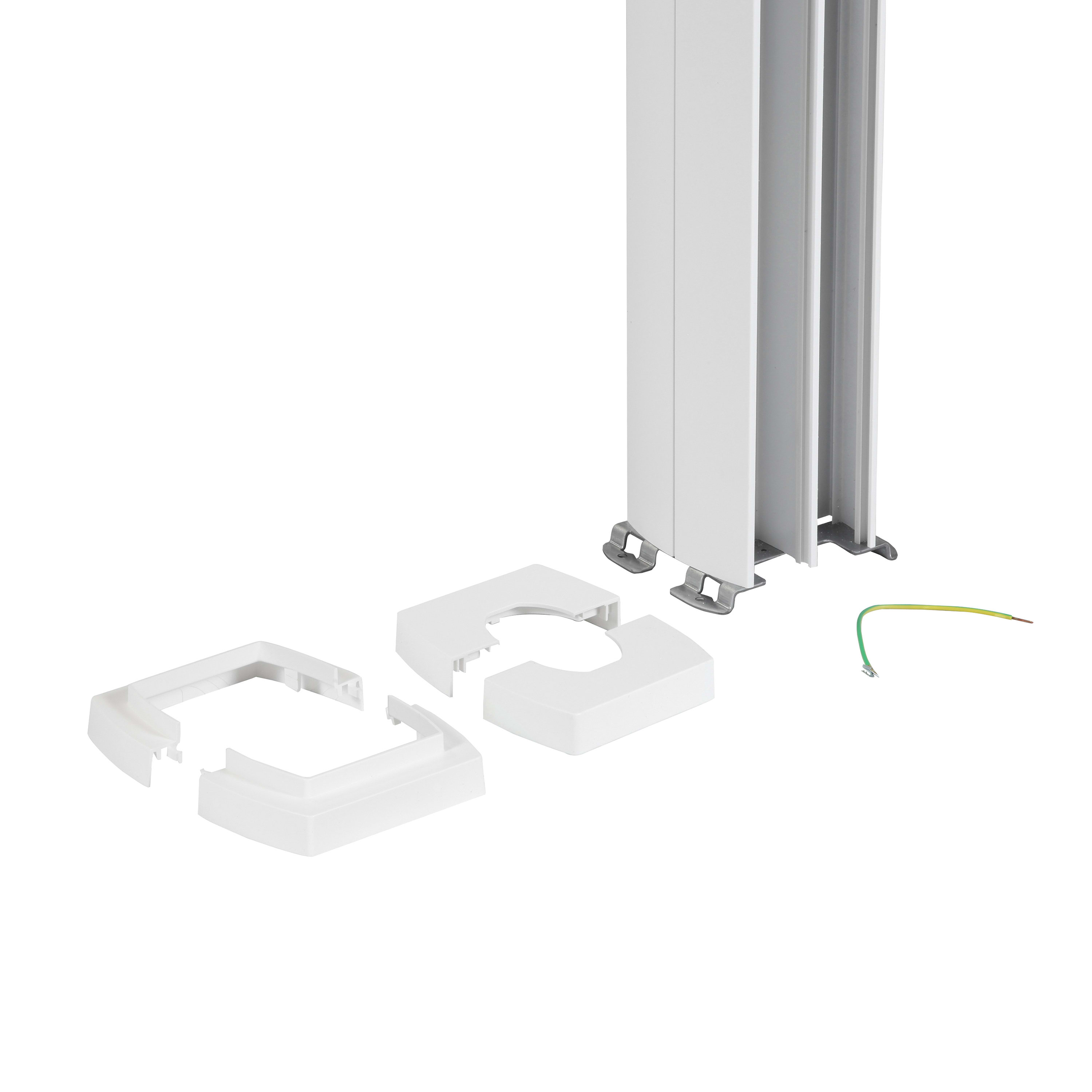 Colonne à clippage direct, 4 compartiments avec couvercle largeur 45mm - Hauteur 3,35m Couvercle PVC et corps en alu - Blanc RAL9003 A équiper des prises Mosaic Link - Montage de l'appareillage possible sur 0,68m Avec perche téléscopique IK7 système (corps+couvercle) - IK8 pour le corps aluminium - Conforme aux normes IEC 61084-2-4 et EN 50085-2-4