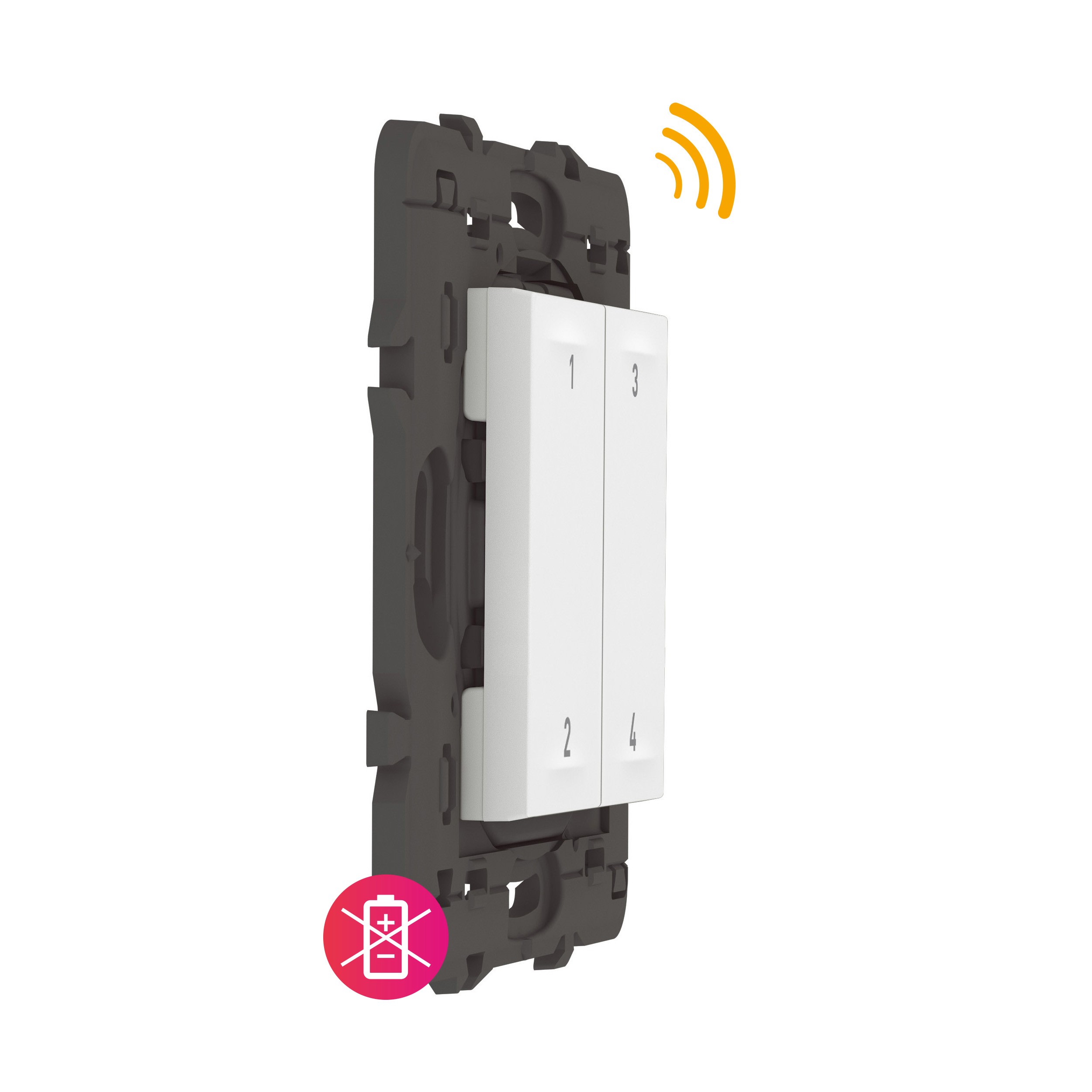 4 boutons pour lancer 4 scénarios personnalisables depuis l'App Home + Control (Paramètres/Scénarios) Produit autonome, fonctionne sans aucune pile. Ne nécessite pas de maintenance Technologie radio 2.4GHz avec protocole Zigbee 3.0 sûr et stable Blanc