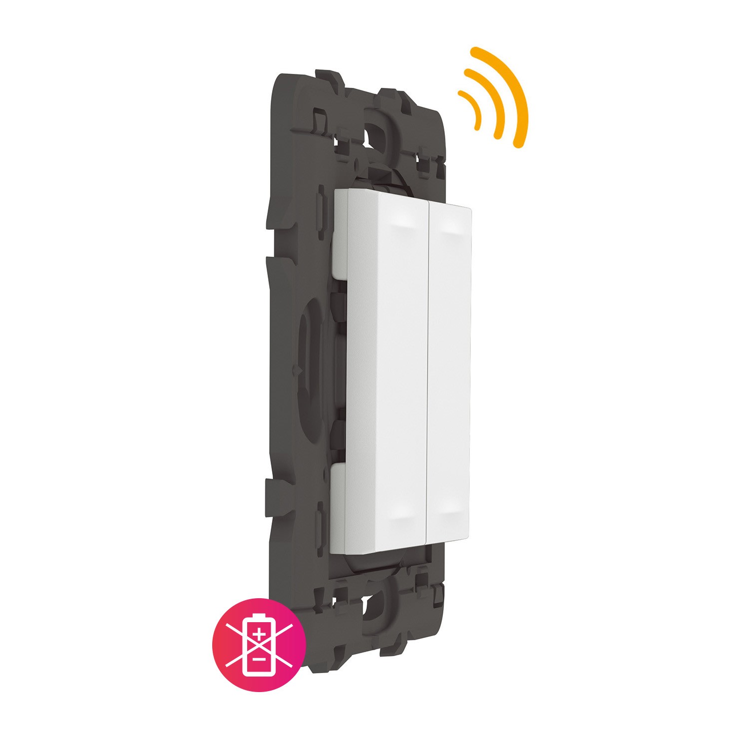 Commande double sans fils, sans pile Self-e Mosaic with Netatmo autonome et extra-plate pour éclairage et prises - livrée avec fixations autocollantes, support et enjoliveur de finition blanc, à équiper d'une plaque de finition