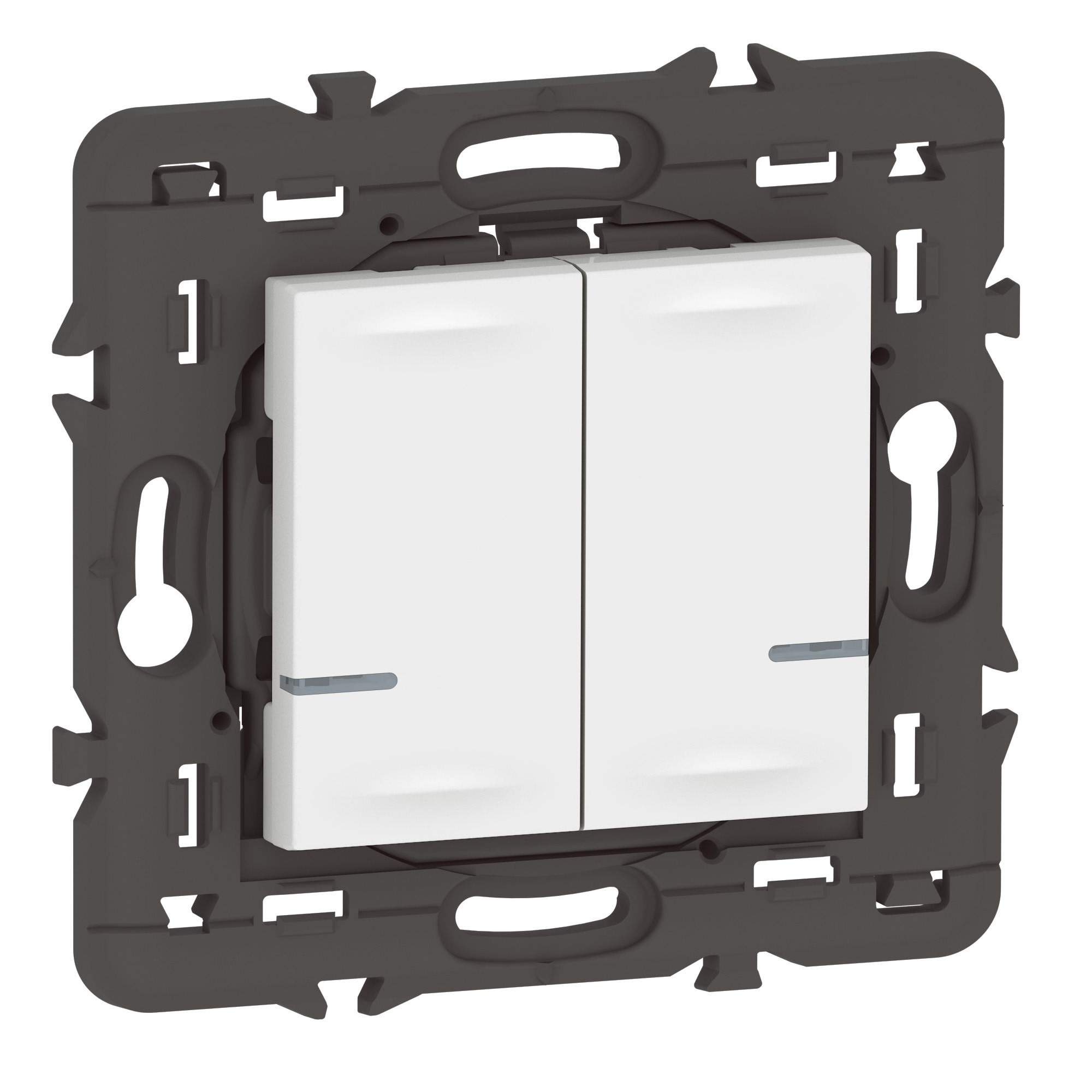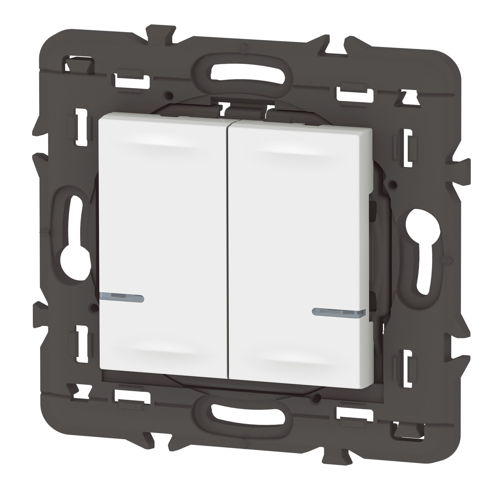 Commande double sans fils Mosaic with Netatmo pour éclairage, prise ou micomodule connectés compatible avec l'App Home + Control - blanc, à équiper de plaque de finition, livrée avec pile