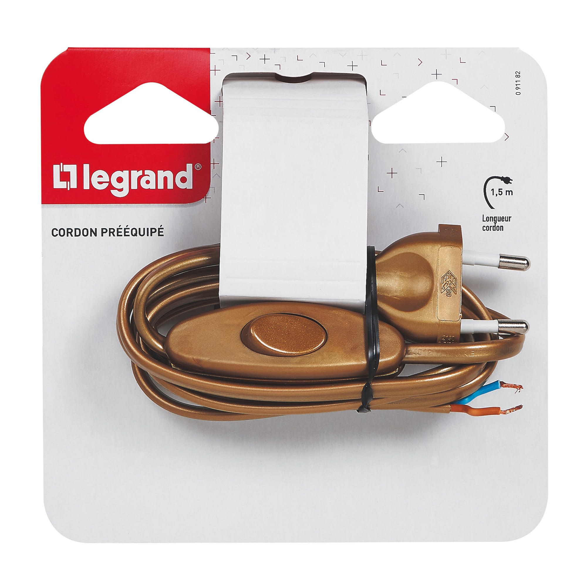 Legrand - Cordon pré-équipé pour lampe avec fiche mâle et interrupteur 2A - vieil or - 091182