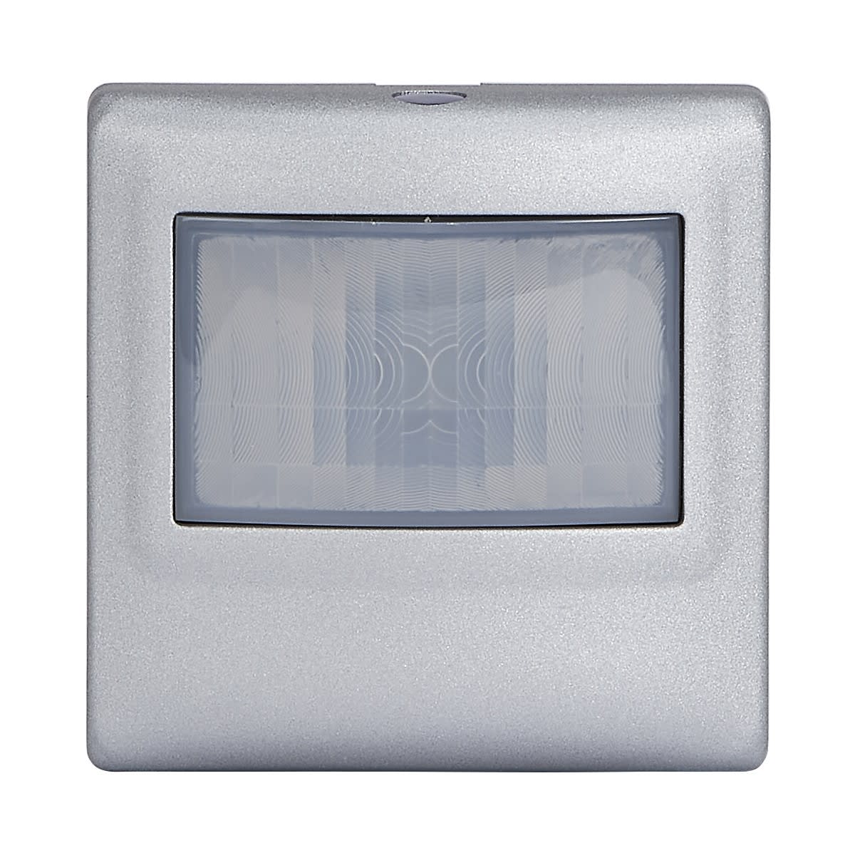 Détecteur mural universel Mosaic à détection infrarouge, compatible toutes lampes et jusqu'à 100W LED, câblage 2 fils sans Neutre - 2 modules couleur aluminium - à équiper d'un support et d'une plaque Mosaic