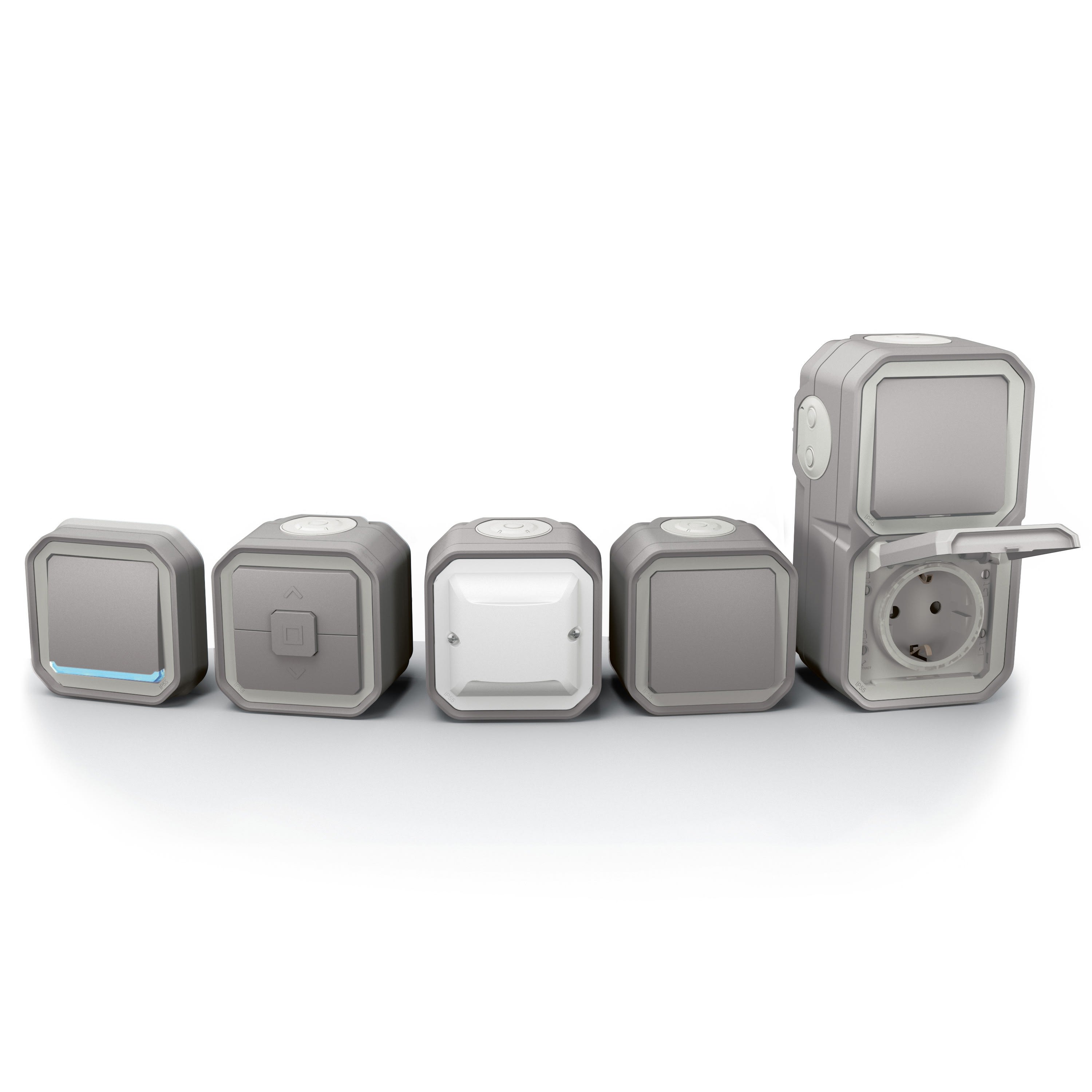 Plexo est une gamme d'appareillage étanche adaptée à l'ensemble des chantiers : résidentiels, tertiaires et industriels. Disponible en version complète saillie et encastrée pour les fonctions essentielles, elle existe également en composable pour plus de flexibilité. L'adaptateur Mosaic™ permet d'enrichir l'offre disponible dans la gamme Plexo. L'univers Plexo est décliné en 4 couleurs : gris, anthracite, blanc et sable. En complément, les offres Plexo 66 et Soliroc permettent de répondre à des applications qui nécessitent une protection renforcée.