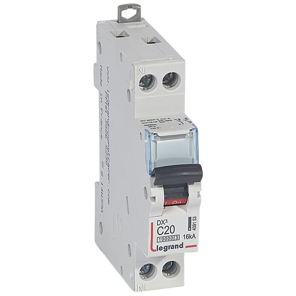 Legrand - Disj. DX310000 16kA arrivée haute/départ bas vis U+N 230V~ 20A courbe C -1 mod - 409153