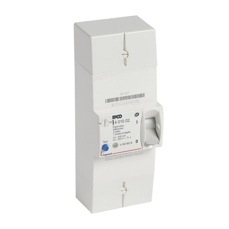Legrand - Disjoncteur de branchement Enedis bipolaire différentiel 500mA instantané - 90A - 401002