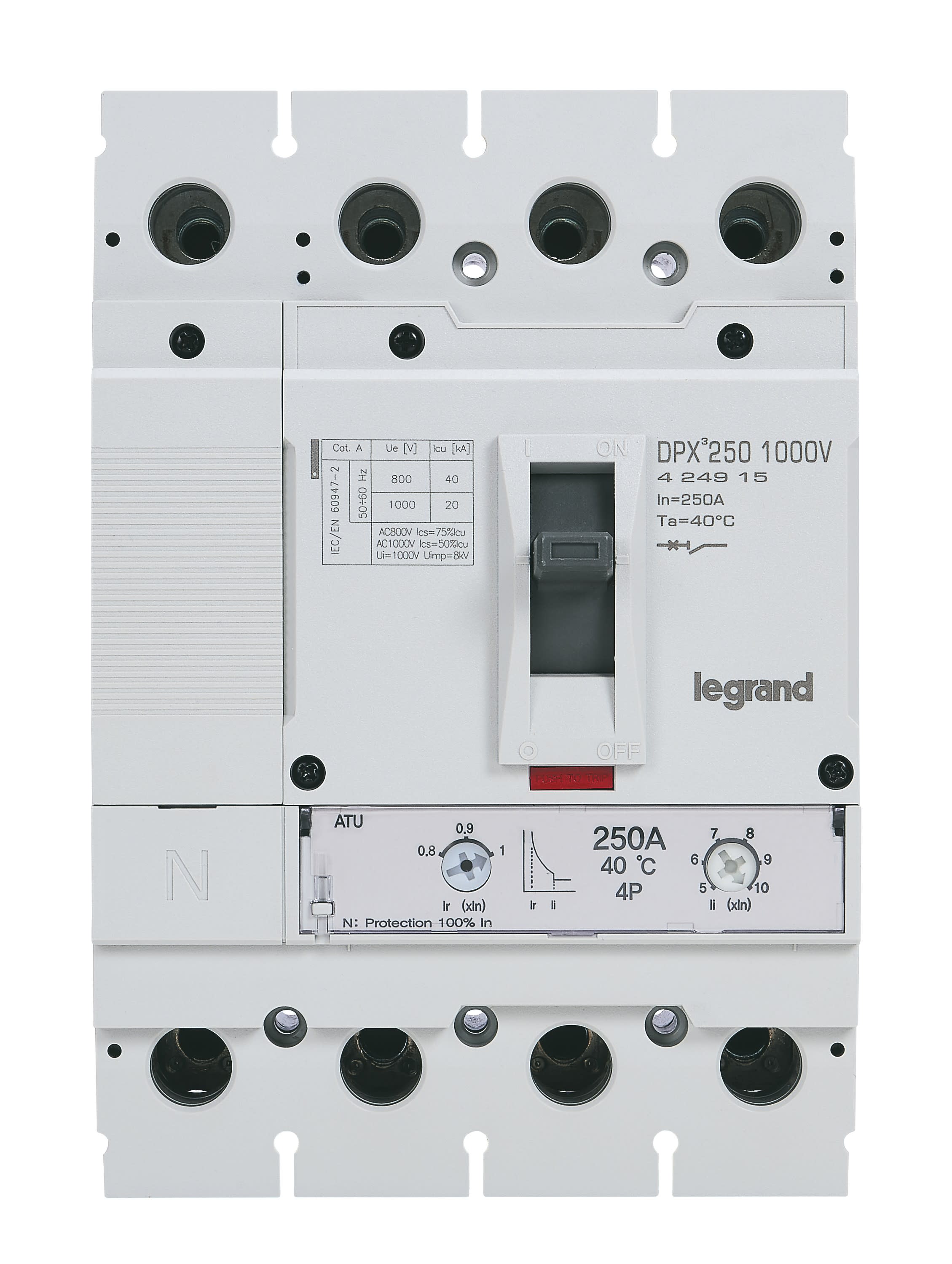 Legrand - Disjoncteur DPX3 250 1000V - 4P 250A 20kA thermomagnétique - 424915