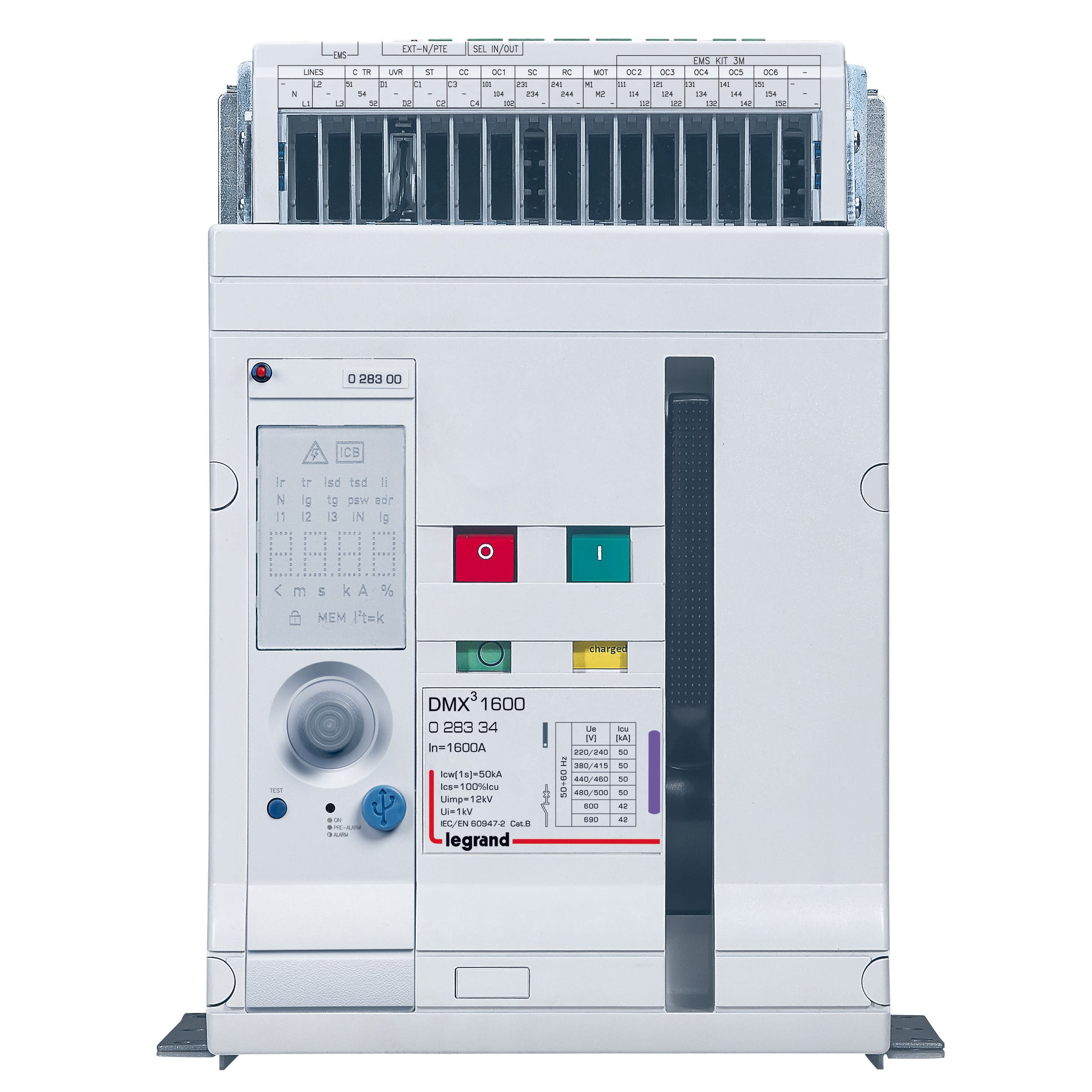 Les disjoncteurs ouverts DMX³ permettent la protection et le contrôle en tête des installations basse tension de 630A à 6300A. Les interrupteurs ouverts DMX³-I permettent la coupure en charge et le sectionnement des circuits à basse tension de 1000A à 6300A. Ces appareils de protection de puissance sont disponibles en version fixe ou débrochable et peuvent être équipés de mécanismes d'interverrouillage pour inverseurs de sources. Ils peuvent être complétés par des auxiliaires de type déclencheurs de courant, commandes motorisées, verrouillage, prises avant ou arrière, épanouisseurs. Les unités de protection électroniques permettent des réglages précis des paramètres de protection et doivent être commandées en même temps que le DMX³ pour un assemblage usine. Le DMX³ 1600 dispose d'une version complète pré-équipée avec une unité de protection. Les unités de protection peuvent être réglées directement sur écran ou en assocation avec un dongle Bluetooth, le réglage des paramètres peut s'effectuer via une App.