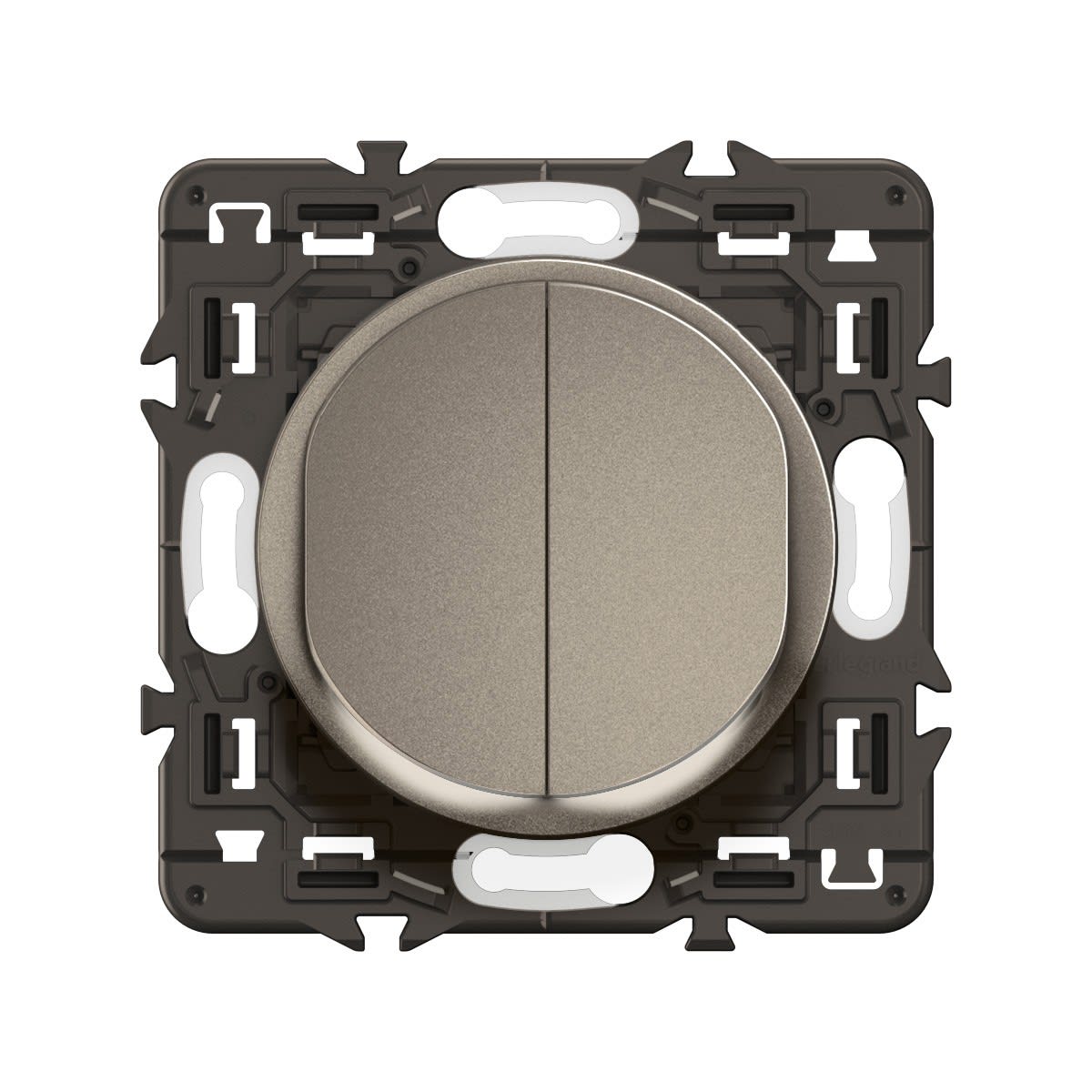 Legrand - Double interrupteur lumineux Céliane 10AX enjoliveur Titanium, support et voyant - CY3001