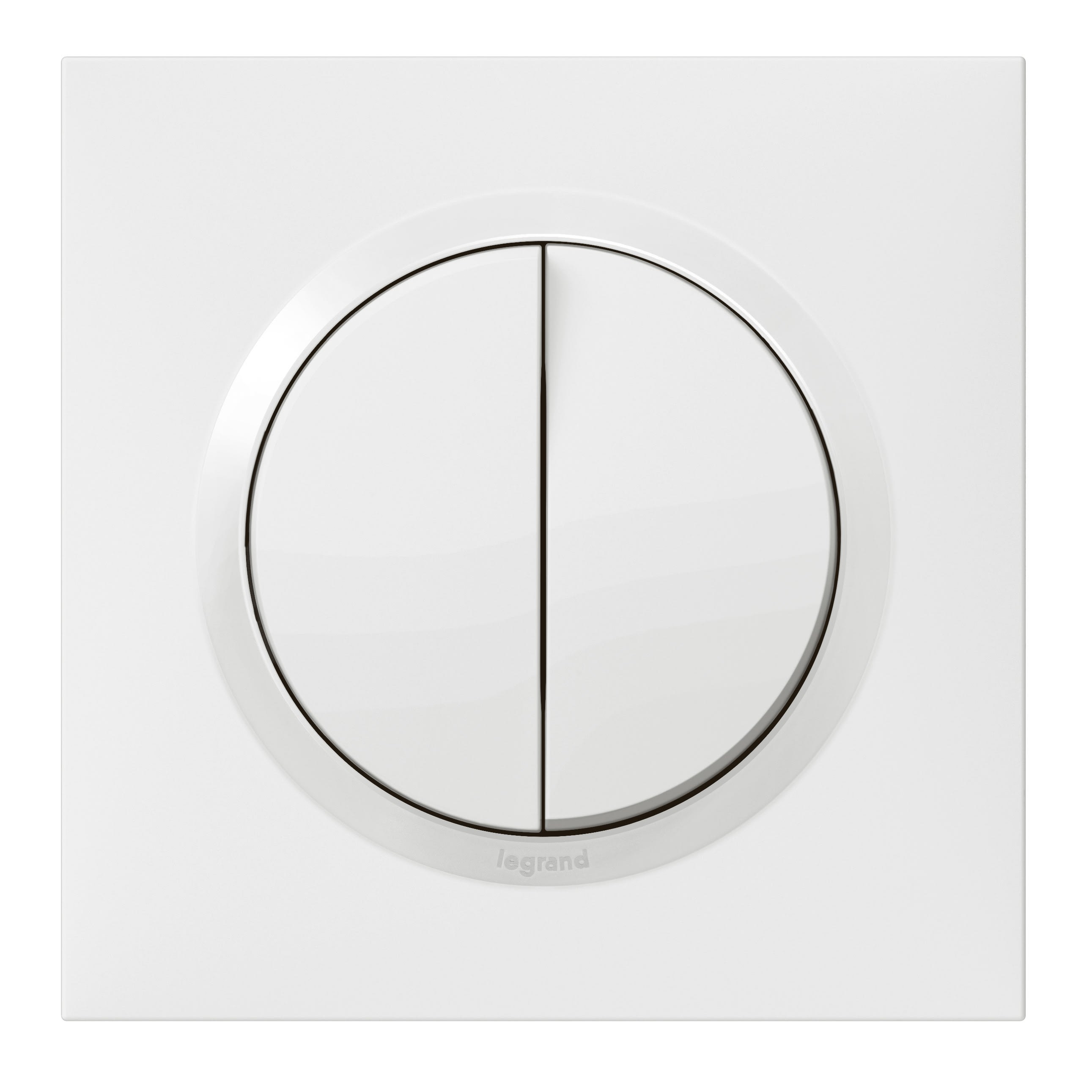 Legrand - Double interrupteur ou va-et-vient dooxie 10AX 250V~ avec plaque carrée blanche - 095011