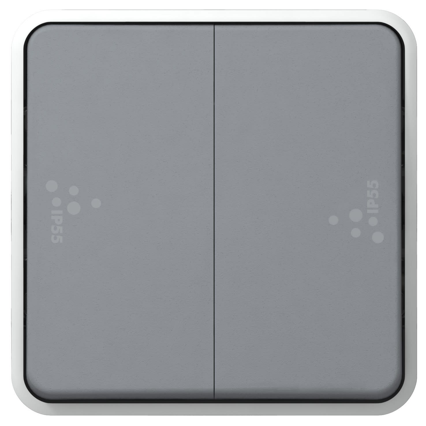 Double interrupteur ou va-et-vient Plexo composable - Gris - À équiper d'un support plaque pour montage en encastré dans boîte ou d'un boîtier pour montage en saillie