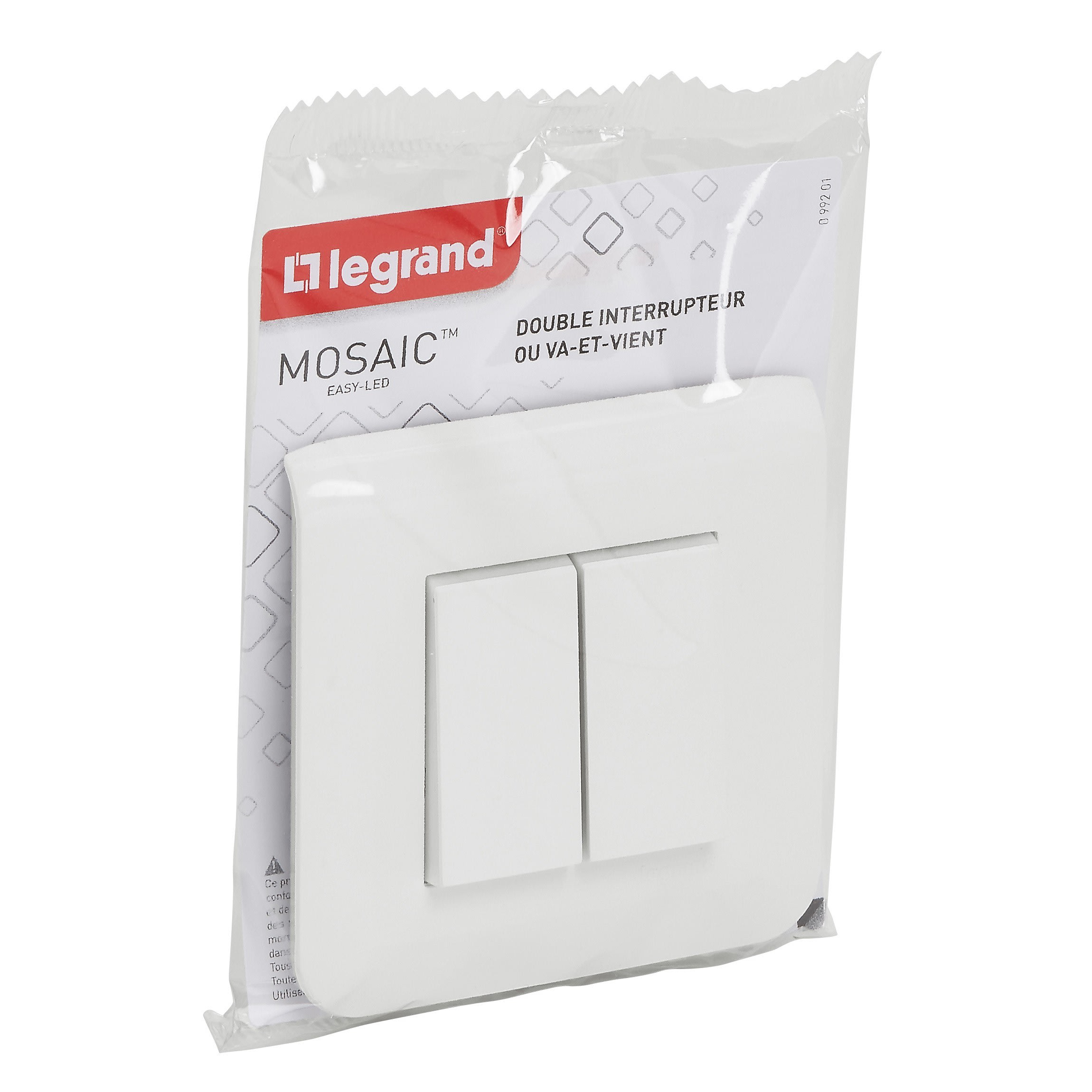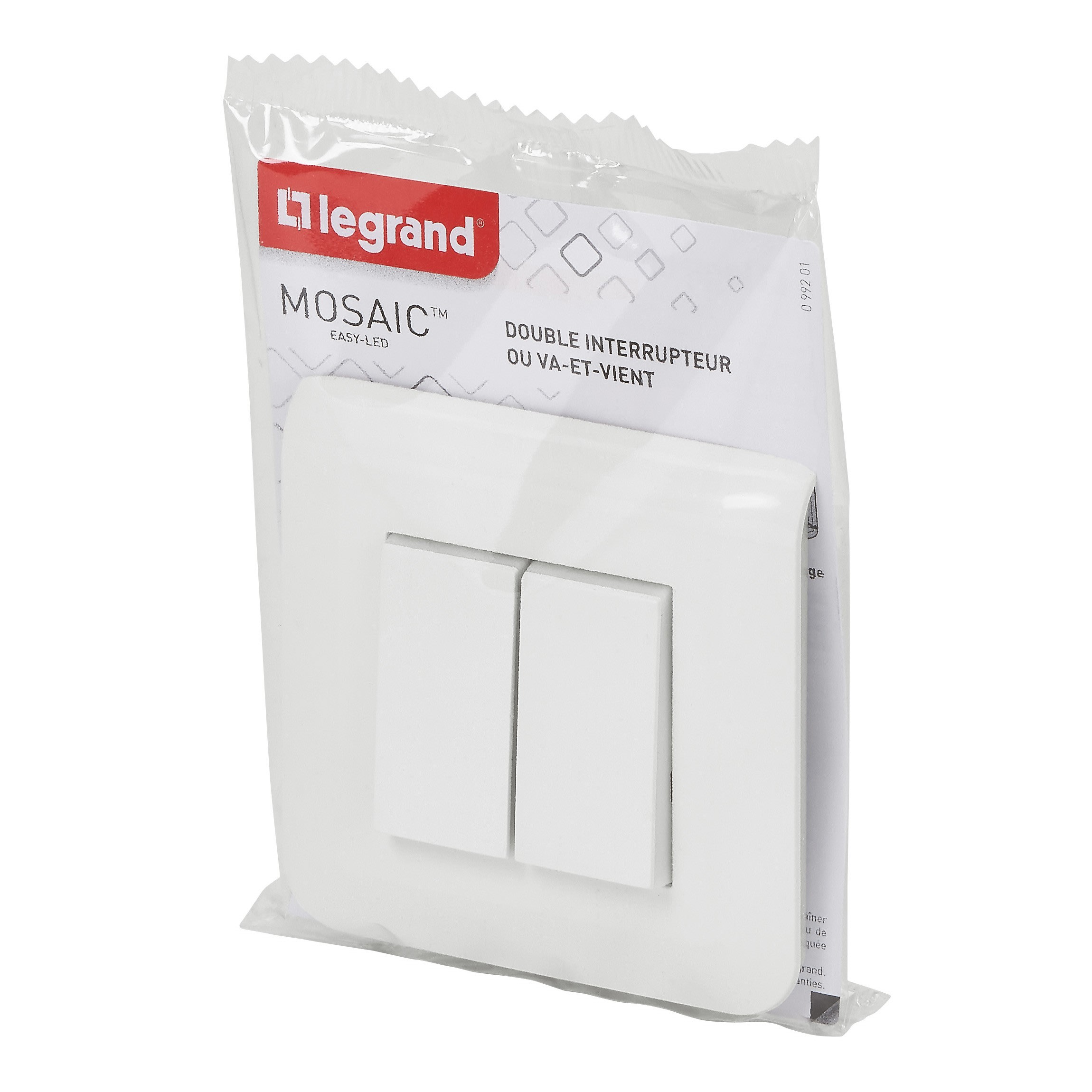 Legrand - Double interrupteur ou va-et-vient Mosaic 10A blanc complet avec plaque - 099201