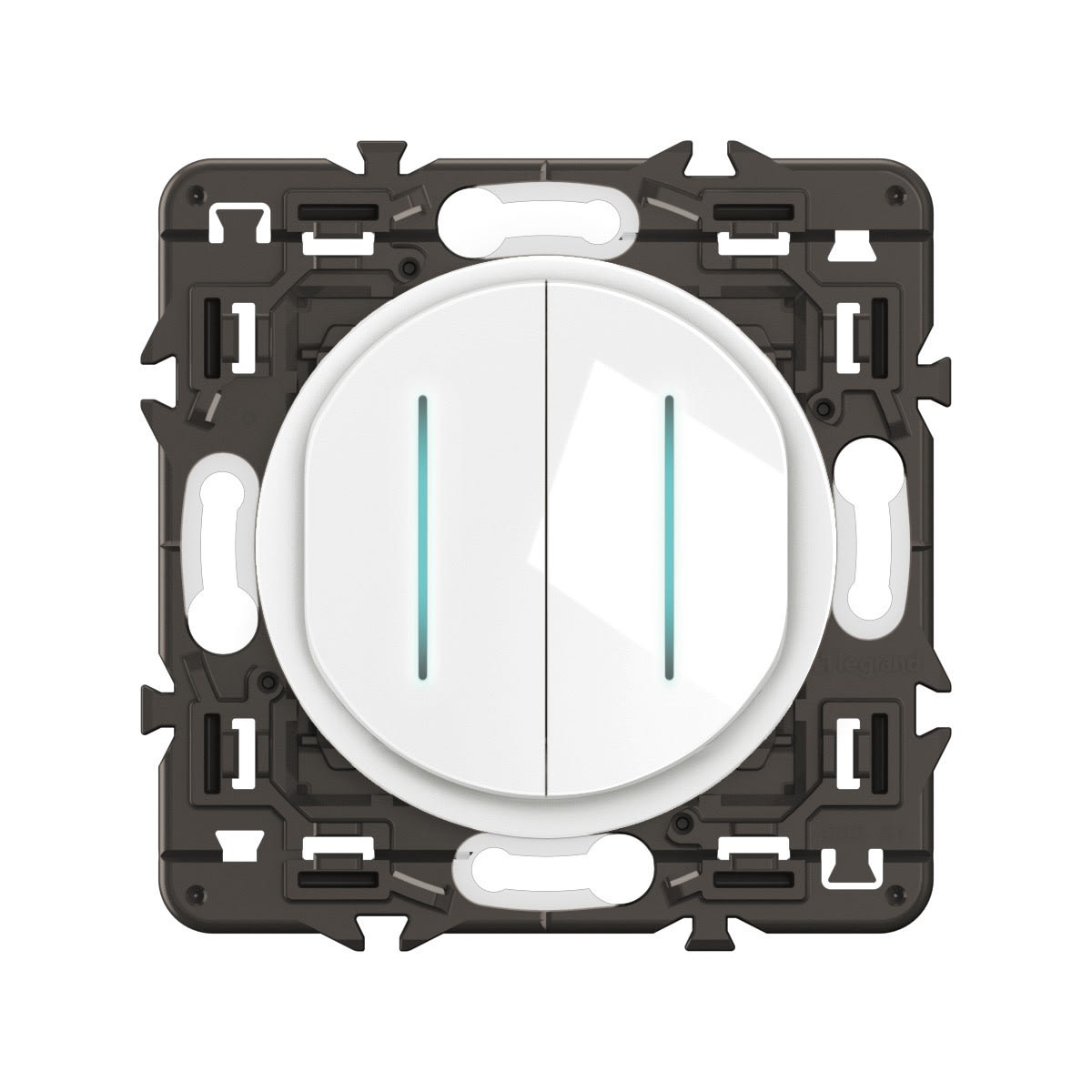 Legrand - Double interrupteur témoin Céliane 10AX enjoliveur Blanc, support et voyant - CX4001