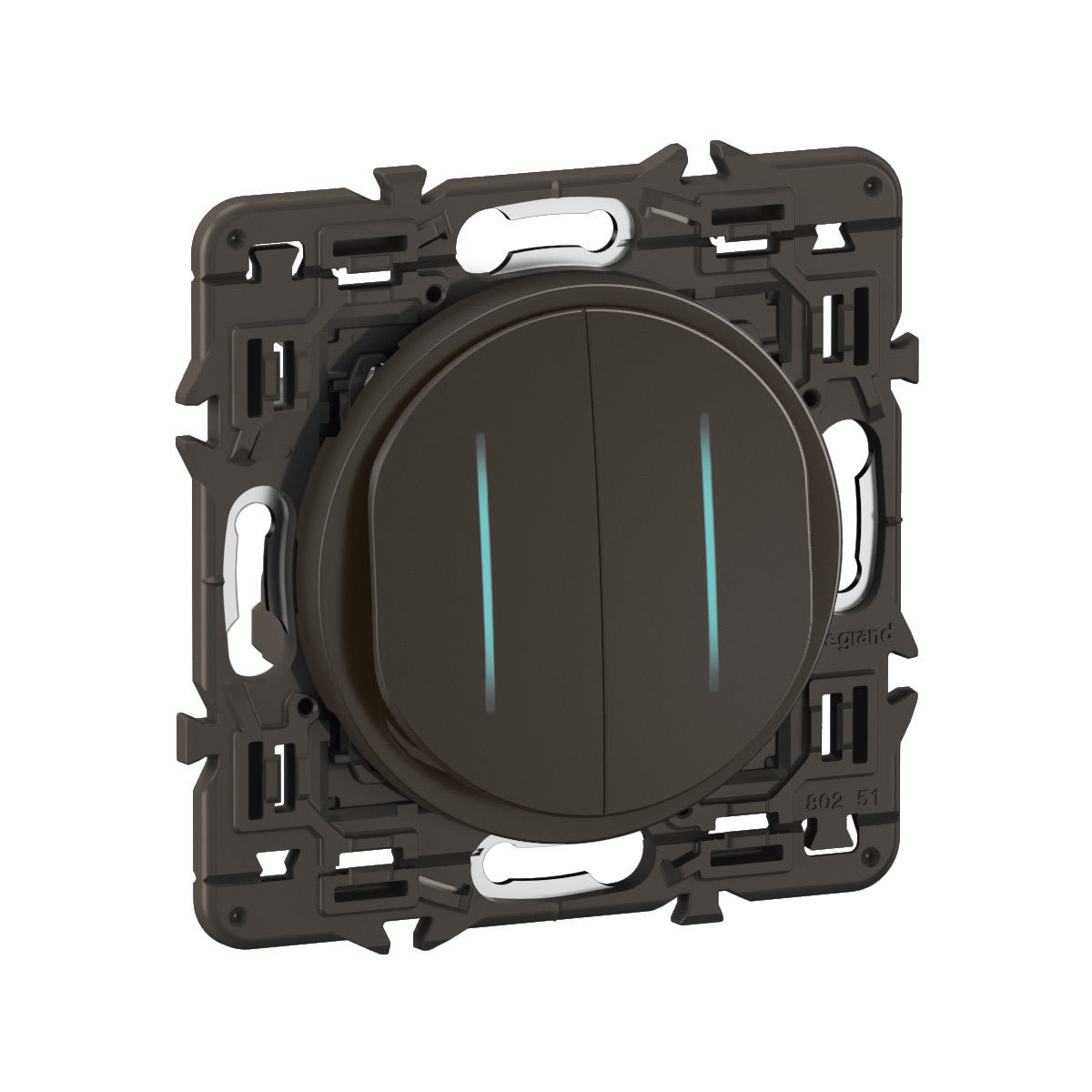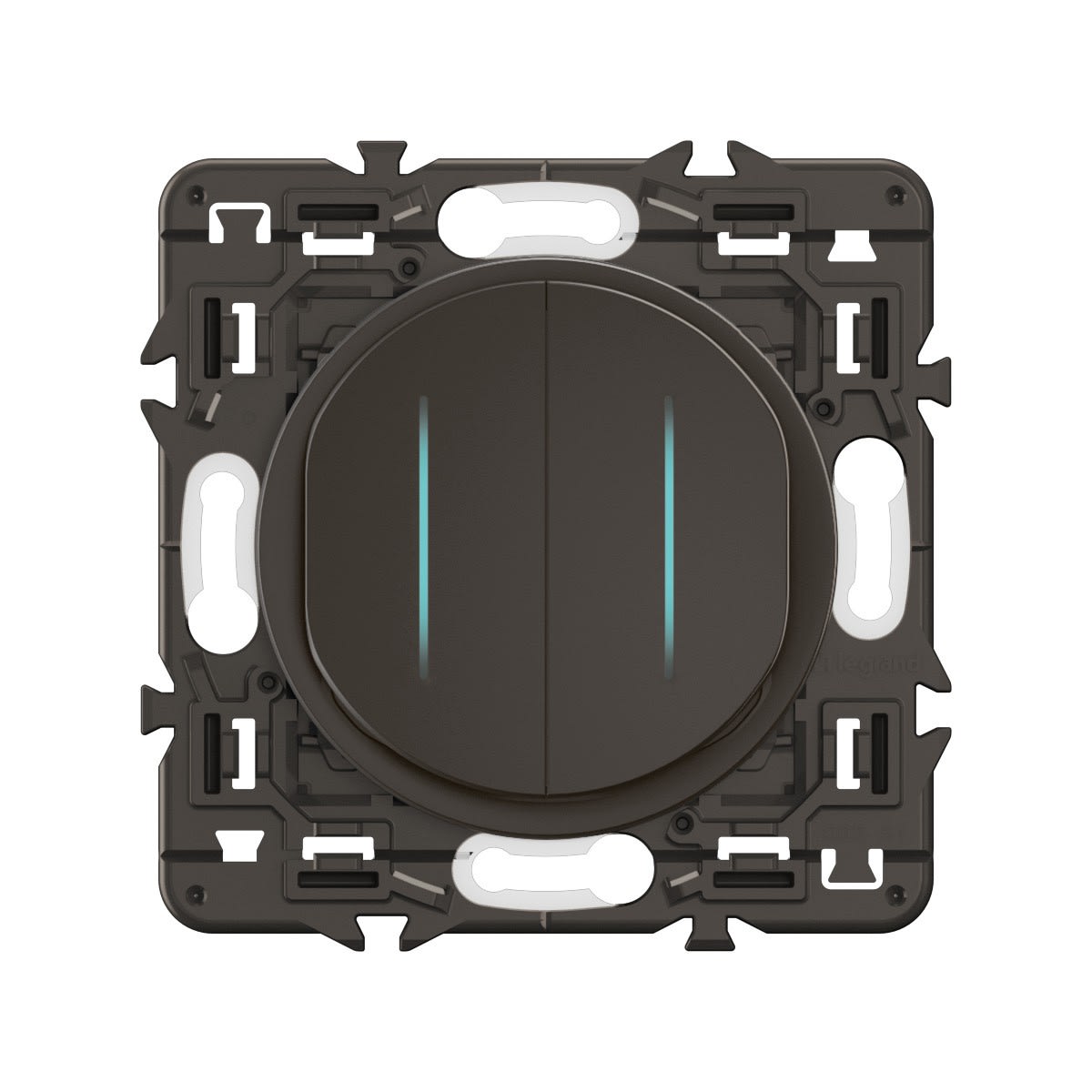 Legrand - Double interrupteur témoin Céliane 10AX enjoliveur Noir, support et voyant - CZ4001